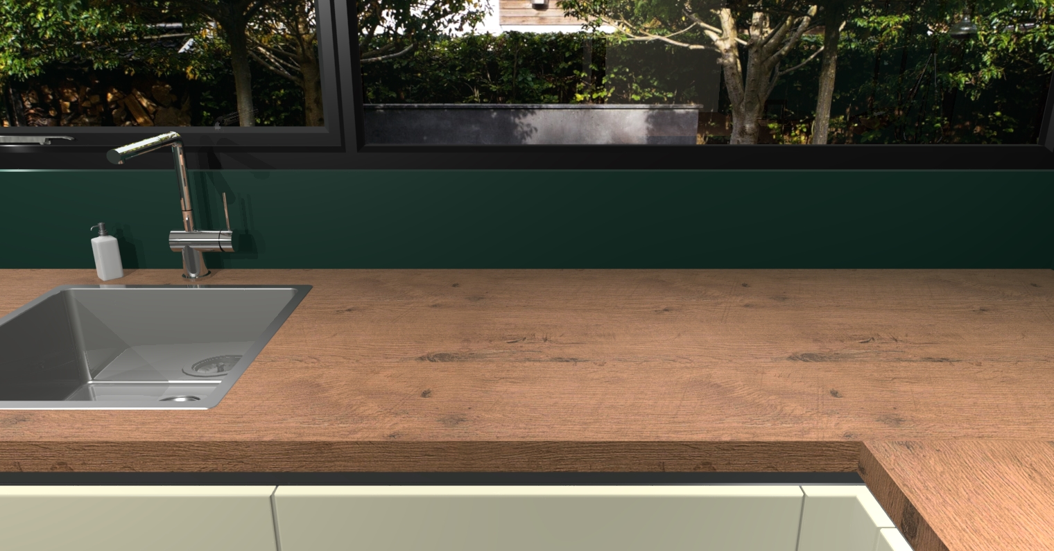 - Bij een hoekwerkblad zijn de hoeken in gevreesd en op maat gemaakt
