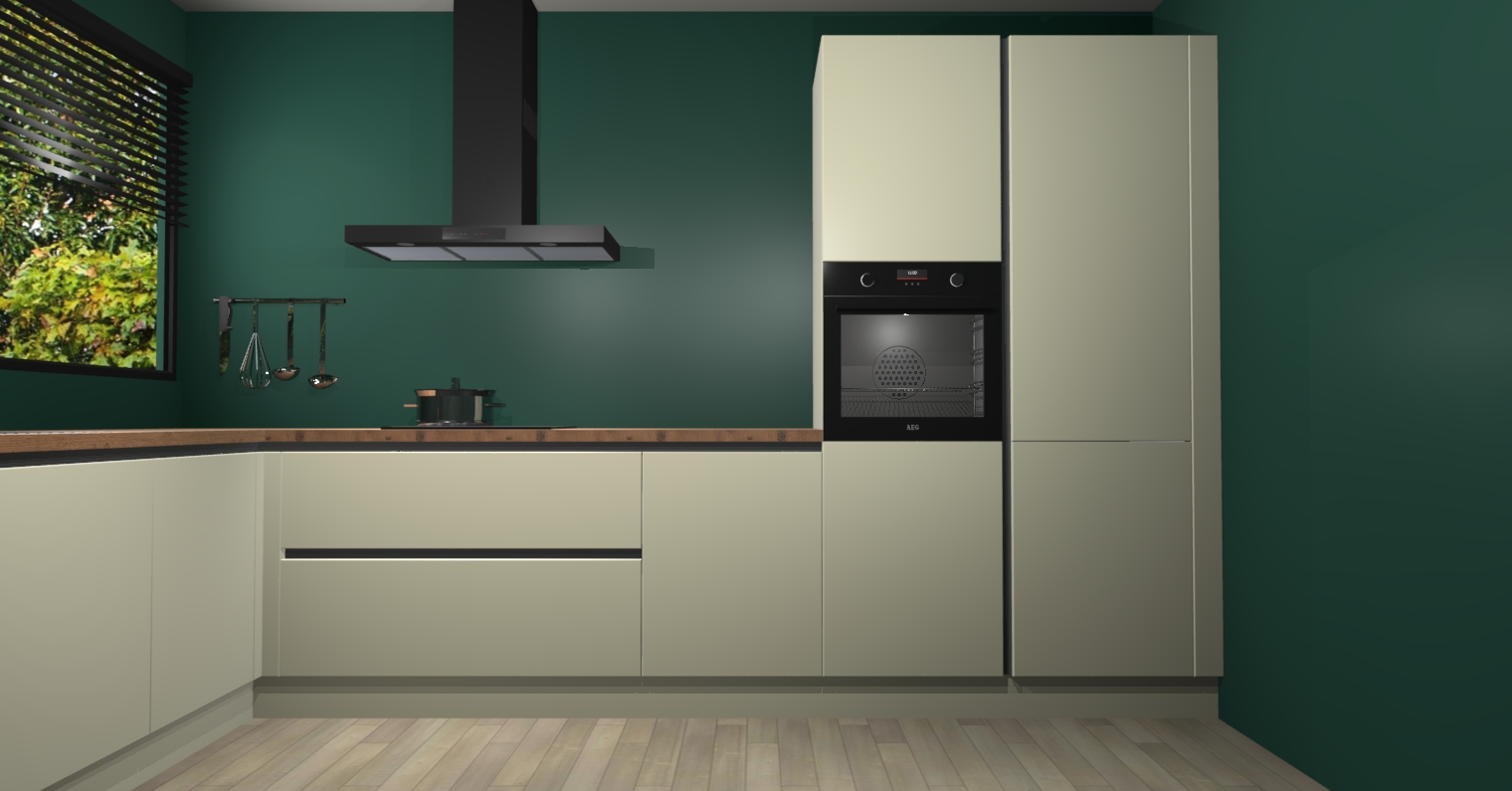 Met een modern, tijdloos design en ruime opslagruimte, zult u zich in no-time thuis voelen in uw nieuwe keuken. Uw leven wordt eenvoudiger met de soft-close deuren die voor het ultieme stille comfort zorgen - geen geluid dat u stoort terwijl u kookt. Ook is de keuken voorzien van 5 ingebouwde apparaten: een oven, inductie kookplaat, afzuigkap, vaatwasser en koelkast. Deze kunnen gemakkelijk na bestelling worden bijgewerkt naar AEG - waardoor uw luxe ervaring compleet is.