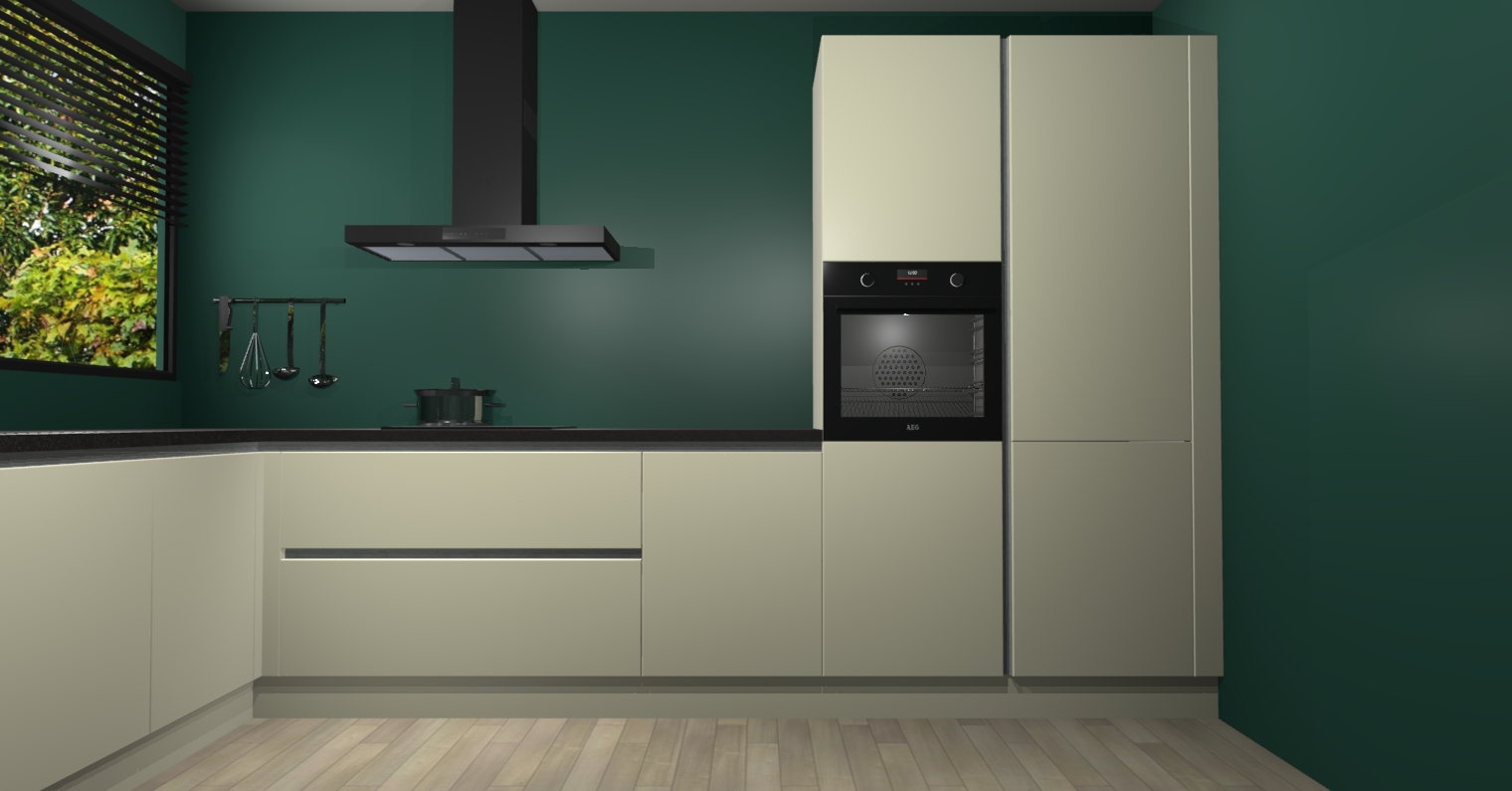 Met een modern, tijdloos design en ruime opslagruimte, zult u zich in no-time thuis voelen in uw nieuwe keuken. Uw leven wordt eenvoudiger met de soft-close deuren die voor het ultieme stille comfort zorgen - geen geluid dat u stoort terwijl u kookt. Ook is de keuken voorzien van 5 ingebouwde apparaten: een oven, inductie kookplaat, afzuigkap, vaatwasser en koelkast. Deze kunnen gemakkelijk na bestelling worden bijgewerkt naar AEG - waardoor uw luxe ervaring compleet is.