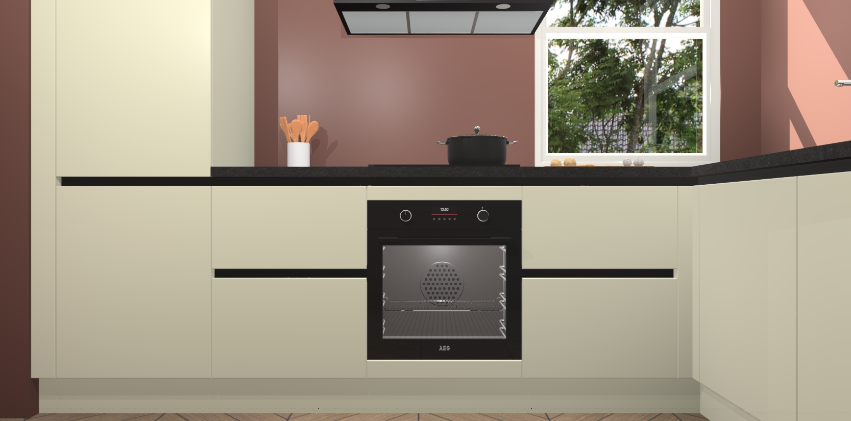 Wat maakt deze keuken zo bijzonder? Ten eerste geeft het houten werkblad uw ruimte een onmiskenbaar klassieke uitstraling. De natuurlijke afwerking roept warmte en elegantie op die nooit uit de mode zullen raken. Bovendien is het gemakkelijk schoon te houden en te onderhouden, zodat je er jarenlang plezier van kunt hebben. Als u op zoek bent naar extra gemak in uw keuken, dan heeft u bij het plaatsen van een bestelling bij ons ook de optie om uw toestellen te upgraden naar AEG-modellen - zo haalt u moderne innovatie van topmerken in apparatentechnologie rechtstreeks in huis.