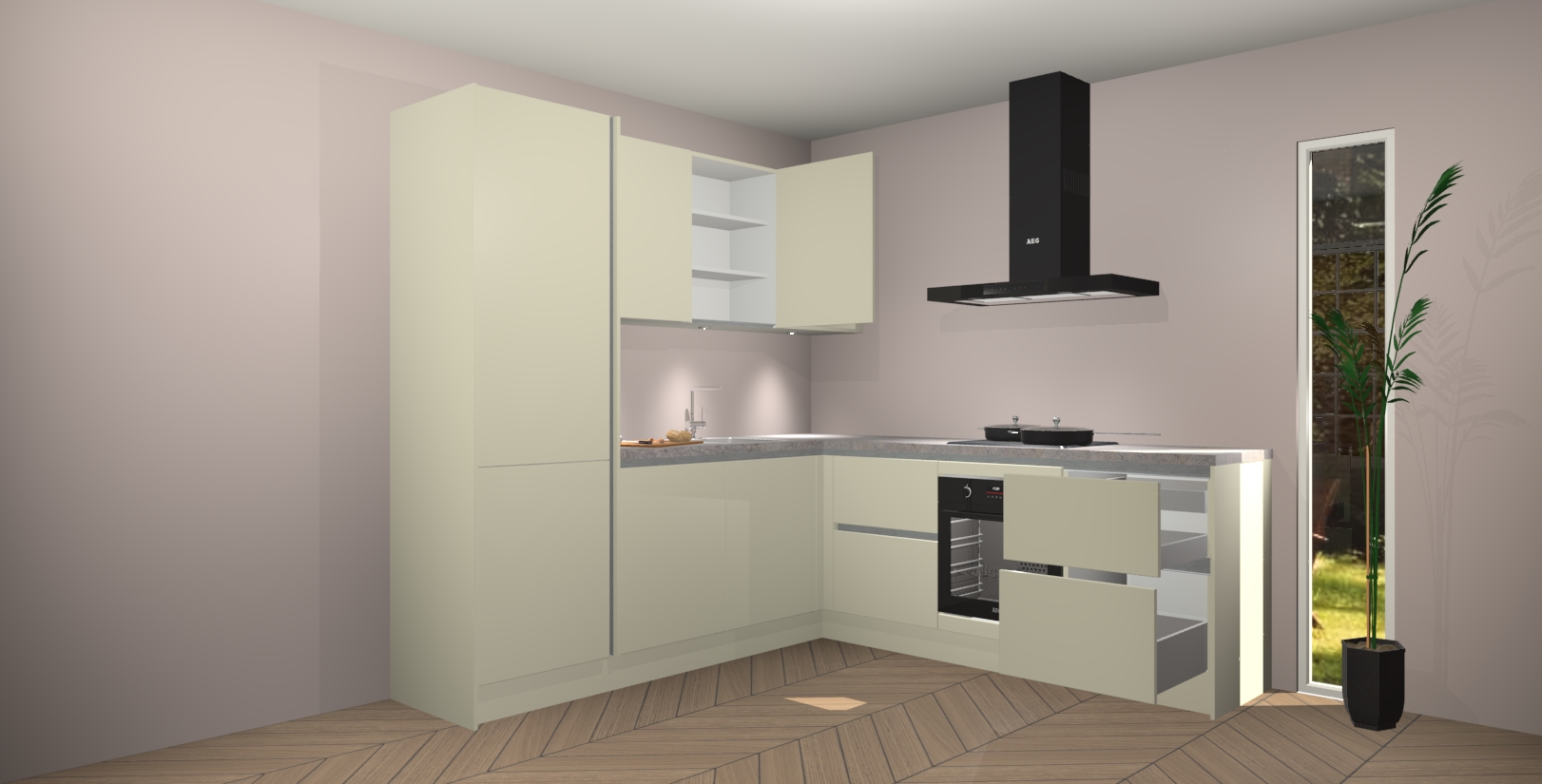 Inclusief plinten, stelpoten en werkblad