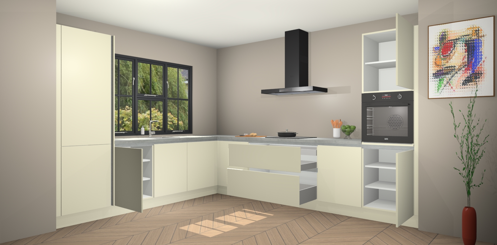 Inclusief plinten, stelpoten en werkblad