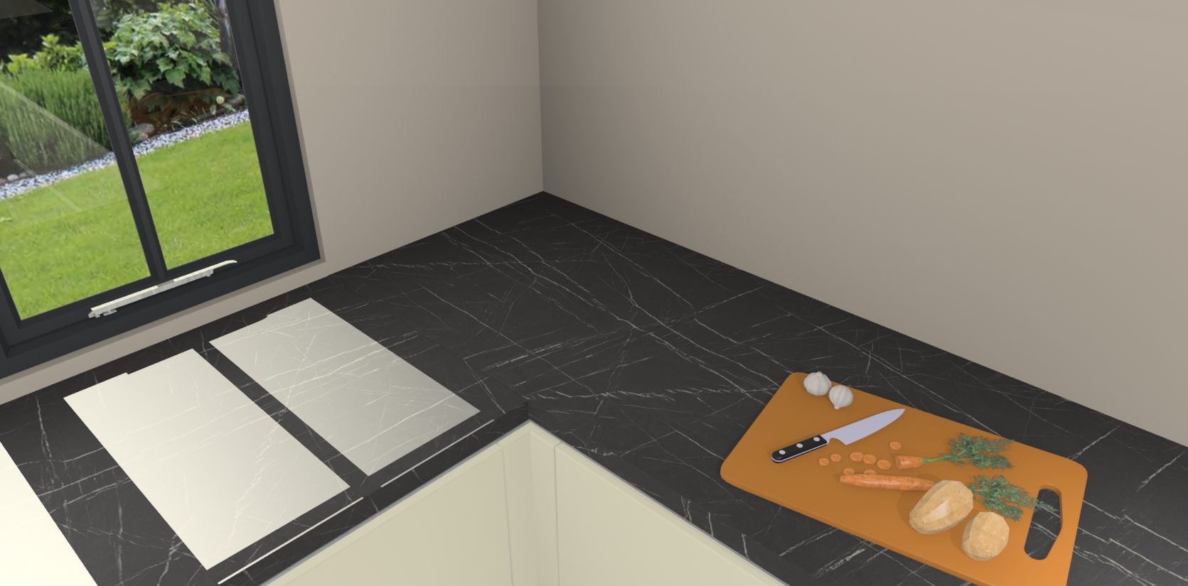 - Bij een hoekwerkblad zijn de hoeken in gevreesd en op maat gemaakt