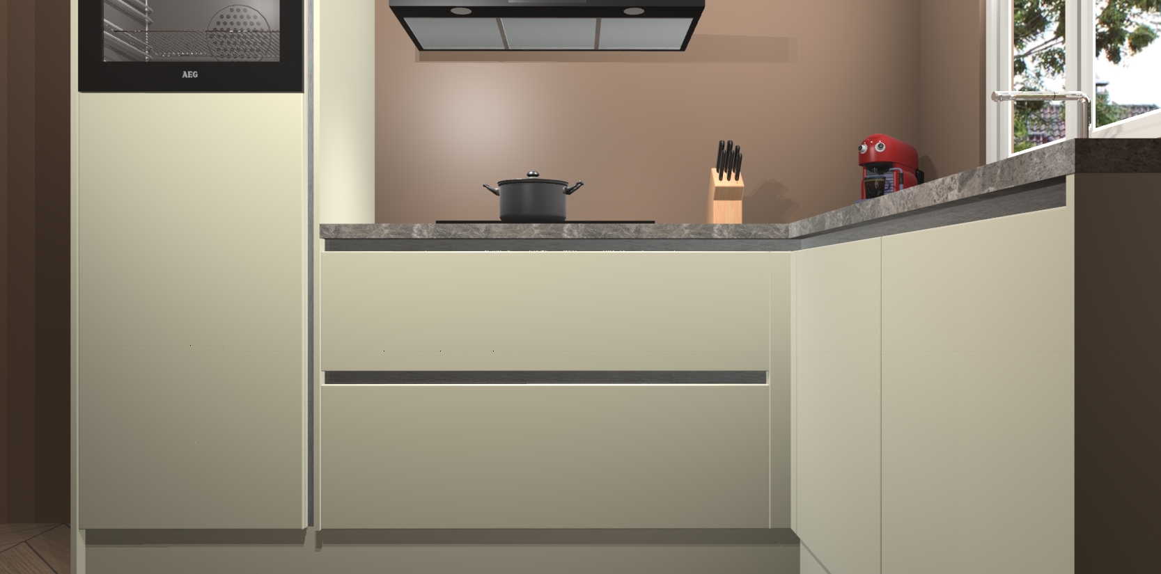 Inclusief plinten, stelpoten en werkblad