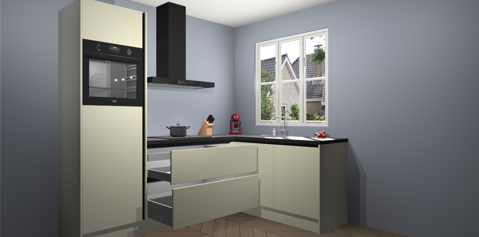 Dit model biedt u voldoende opbergruimte en vijf ingebouwde apparaten: een oven, inductiekookplaat, afzuigkap, vaatwasser en koelkast. Deze apparaten kunnen gemakkelijk worden geüpgrade naar AEG nadat u besteld heeft. De verschillende laden en kastjes bevatten softclose-deuren waardoor ze gezellig dichtvallen met een geruststellend helemaal geruisloos geluid. En dat is nog niet alles! We garanderen ook dat de prijs altijd laag blijft - dus haal nu uw Magnolia greeploze keuken Victoria terwijl het kan.
