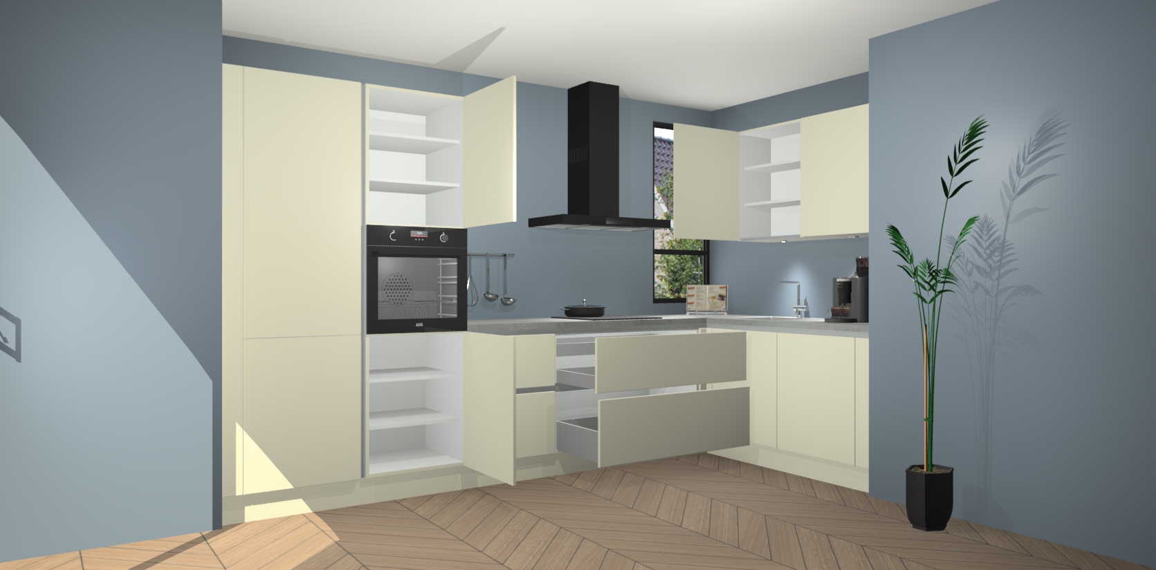 Inclusief plinten, stelpoten en werkblad