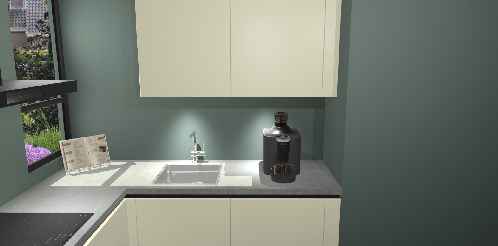 - De spoelbak is nog niet in gevreesd. Dit dient tijdens het werk gedaan te worden