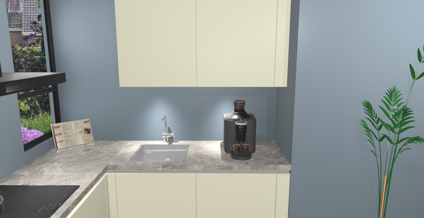 - De spoelbak is nog niet in gevreesd. Dit dient tijdens het werk gedaan te worden