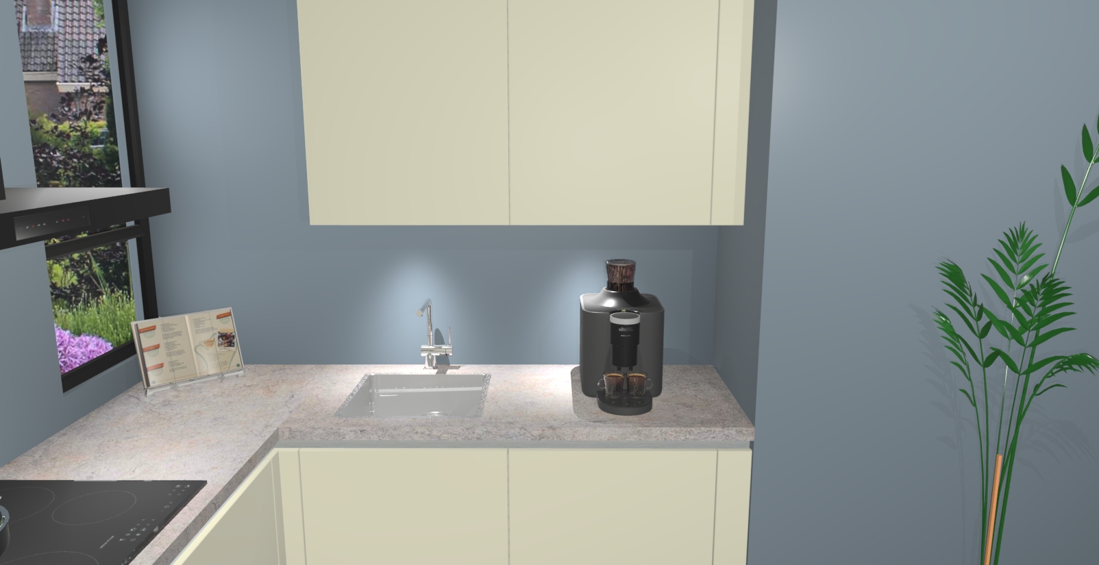 - De spoelbak is nog niet in gevreesd. Dit dient tijdens het werk gedaan te worden