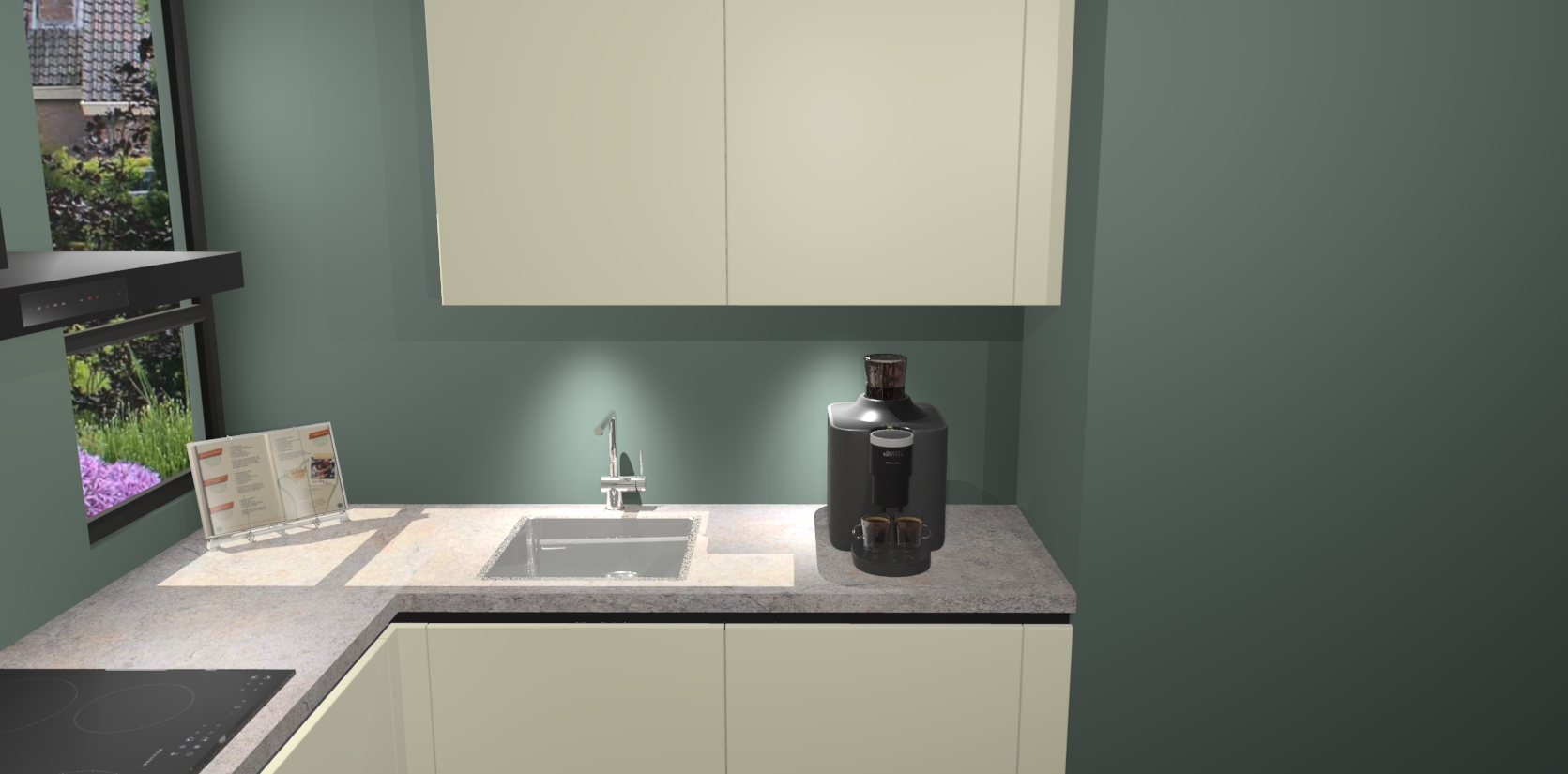 - De spoelbak is nog niet in gevreesd. Dit dient tijdens het werk gedaan te worden