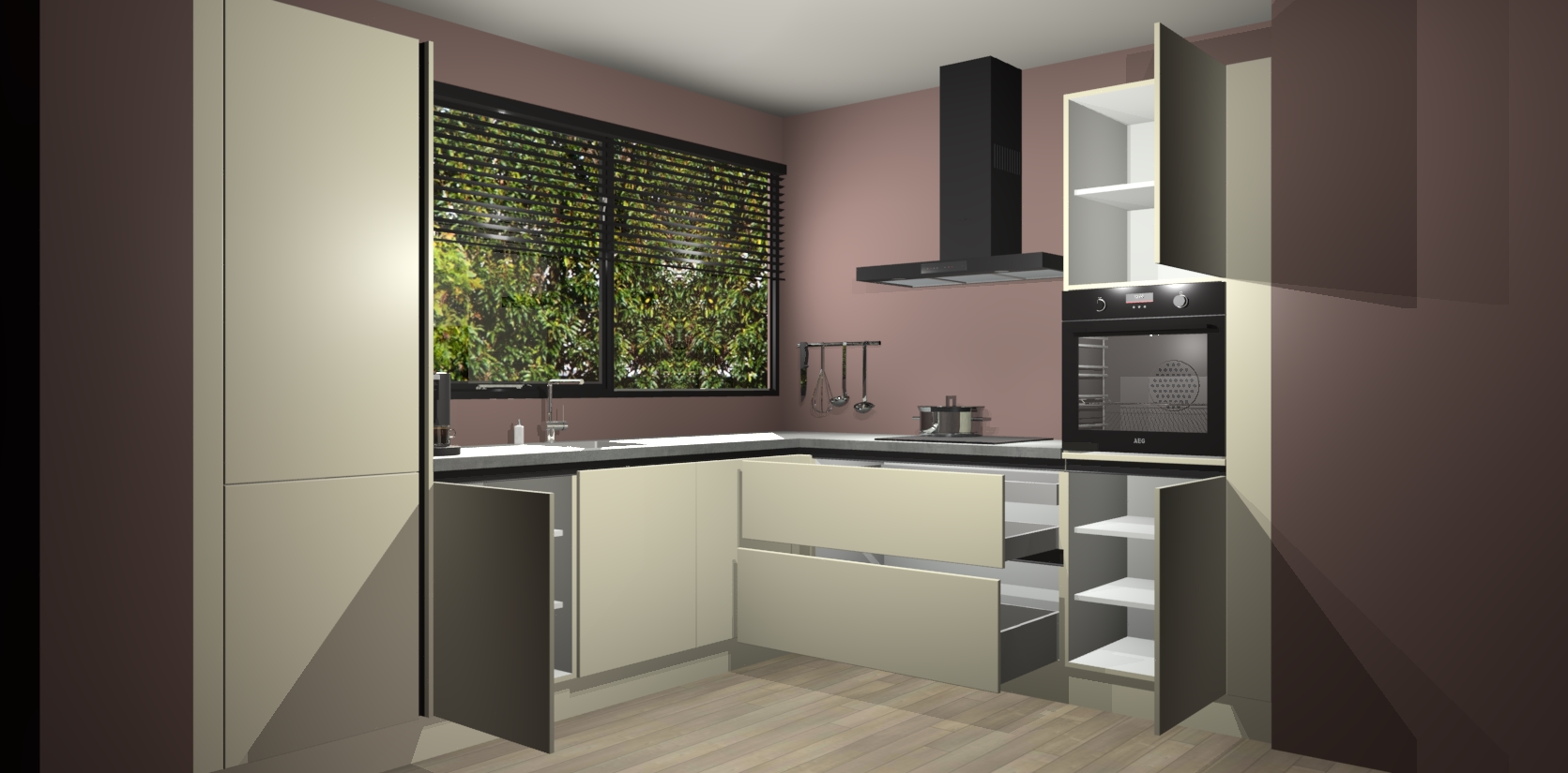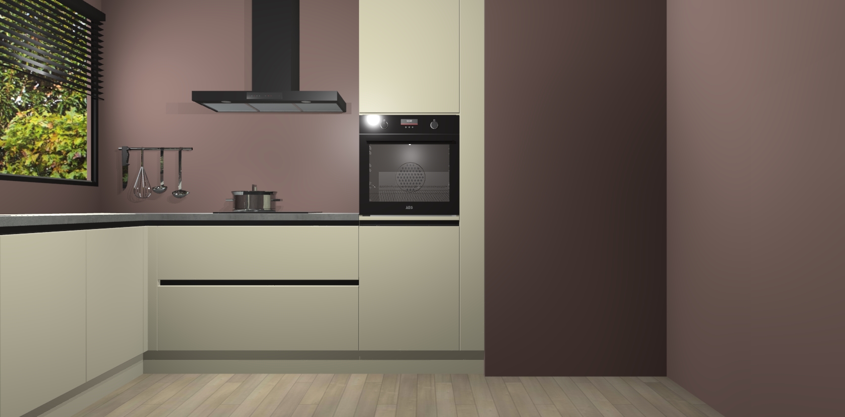 Met een modern, tijdloos design en ruime opslagruimte, zult u zich in no-time thuis voelen in uw nieuwe keuken. Uw leven wordt eenvoudiger met de soft-close deuren die voor het ultieme stille comfort zorgen - geen geluid dat u stoort terwijl u kookt. Ook is de keuken voorzien van 5 ingebouwde apparaten: een oven, inductie kookplaat, afzuigkap, vaatwasser en koelkast. Deze kunnen gemakkelijk na bestelling worden bijgewerkt naar AEG - waardoor uw luxe ervaring compleet is.