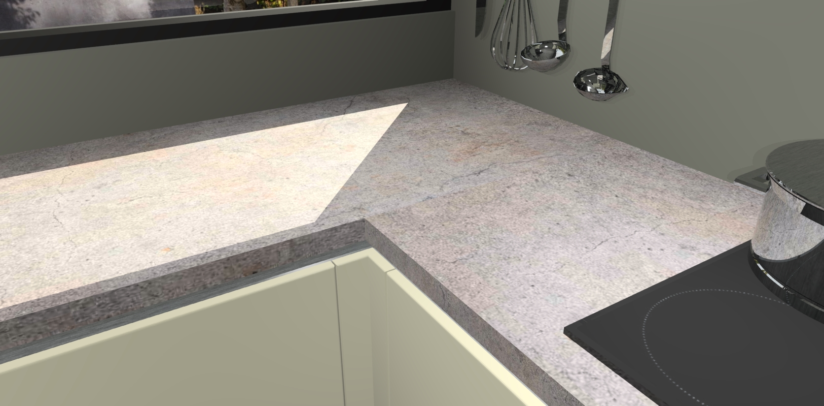 - Bij een hoekwerkblad zijn de hoeken in gevreesd en op maat gemaakt