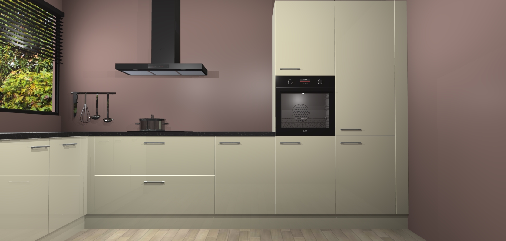 Met een modern, tijdloos design en ruime opslagruimte, zult u zich in no-time thuis voelen in uw nieuwe keuken. Uw leven wordt eenvoudiger met de soft-close deuren die voor het ultieme stille comfort zorgen - geen geluid dat u stoort terwijl u kookt. Ook is de keuken voorzien van 5 ingebouwde apparaten: een oven, inductie kookplaat, afzuigkap, vaatwasser en koelkast. Deze kunnen gemakkelijk na bestelling worden bijgewerkt naar AEG - waardoor uw luxe ervaring compleet is.