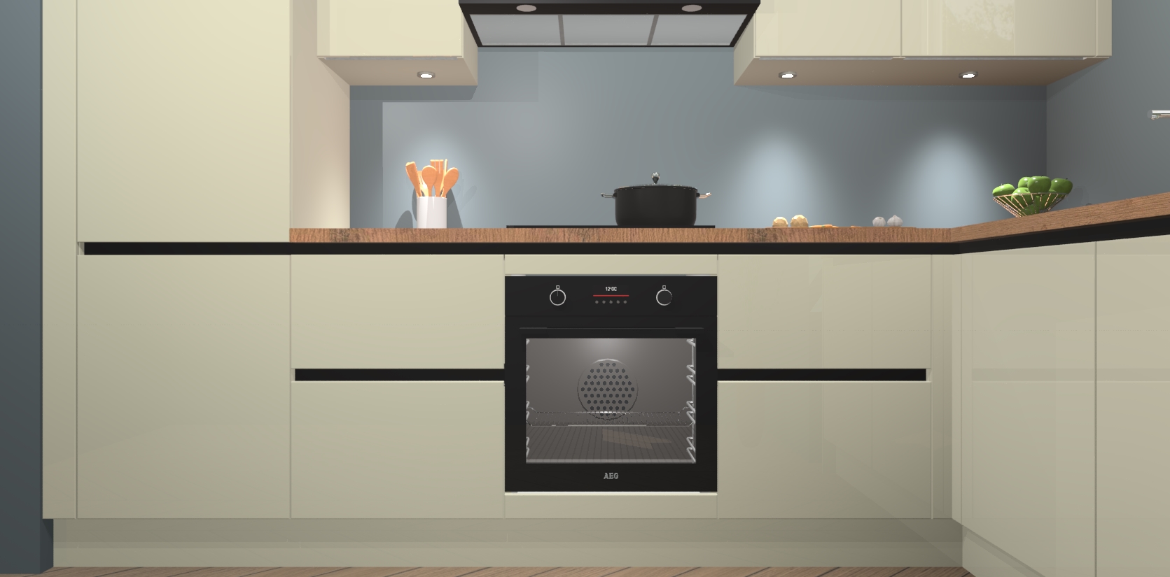 De Magnolia hoogglans greeploze keuken Geneve is uitgerust met 5 inbouwapparaten - een oven, inductiekookplaat, afzuigkap, vaatwasser en koelkast - voor al uw kook- en bewaarbehoeftes. U kunt deze apparaten desgewenst eenvoudig upgraden naar AEG of de oven omruilen voor een combimagnetron na het plaatsen van uw bestelling. En met de soft close deuren, voldoende opbergruimte en kasten die voorgemonteerd worden geleverd, bent u in een mum van tijd klaar om heerlijke maaltijden te bereiden!