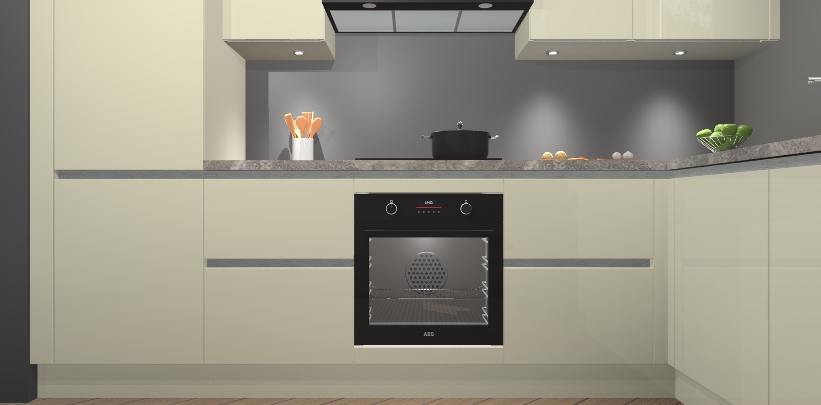 De Magnolia hoogglans greeploze keuken Geneve is uitgerust met 5 inbouwapparaten - een oven, inductiekookplaat, afzuigkap, vaatwasser en koelkast - voor al uw kook- en bewaarbehoeftes. U kunt deze apparaten desgewenst eenvoudig upgraden naar AEG of de oven omruilen voor een combimagnetron na het plaatsen van uw bestelling. En met de soft close deuren, voldoende opbergruimte en kasten die voorgemonteerd worden geleverd, bent u in een mum van tijd klaar om heerlijke maaltijden te bereiden!