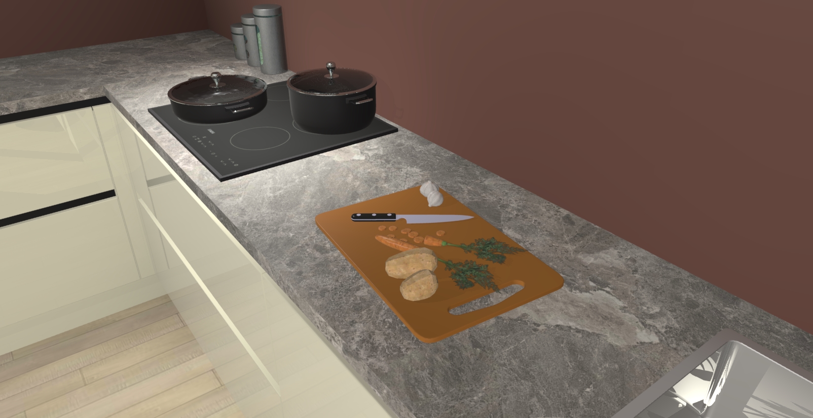 Inclusief plinten, stelpoten en werkblad