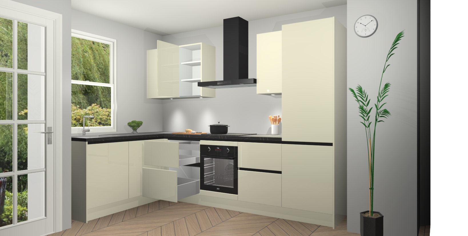 U hoeft zich ook geen zorgen te maken over een gebrek aan opbergruimte, want deze keuken heeft voldoende opbergmogelijkheden zowel boven als onder het aanrecht. Om het leven nog makkelijker te maken, wordt deze moderne hoekkeuken geleverd met 5 ingebouwde apparaten, waaronder een oven, inductiekookplaat, afzuigkap, vaatwasser en koelkast, zodat u in een mum van tijd klaar bent voor actie!
