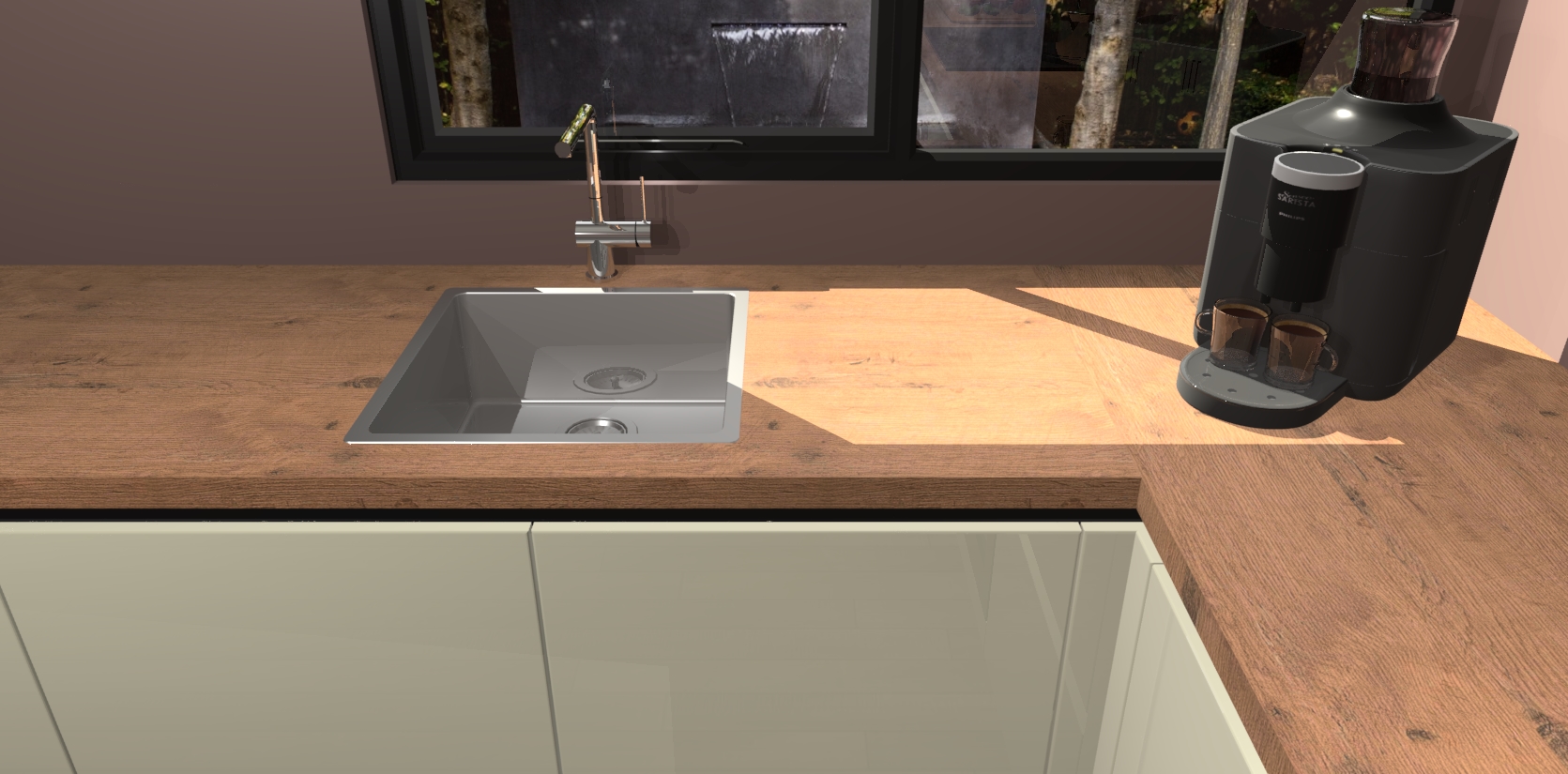 - De spoelbak is nog niet in gevreesd. Dit dient tijdens het werk gedaan te worden