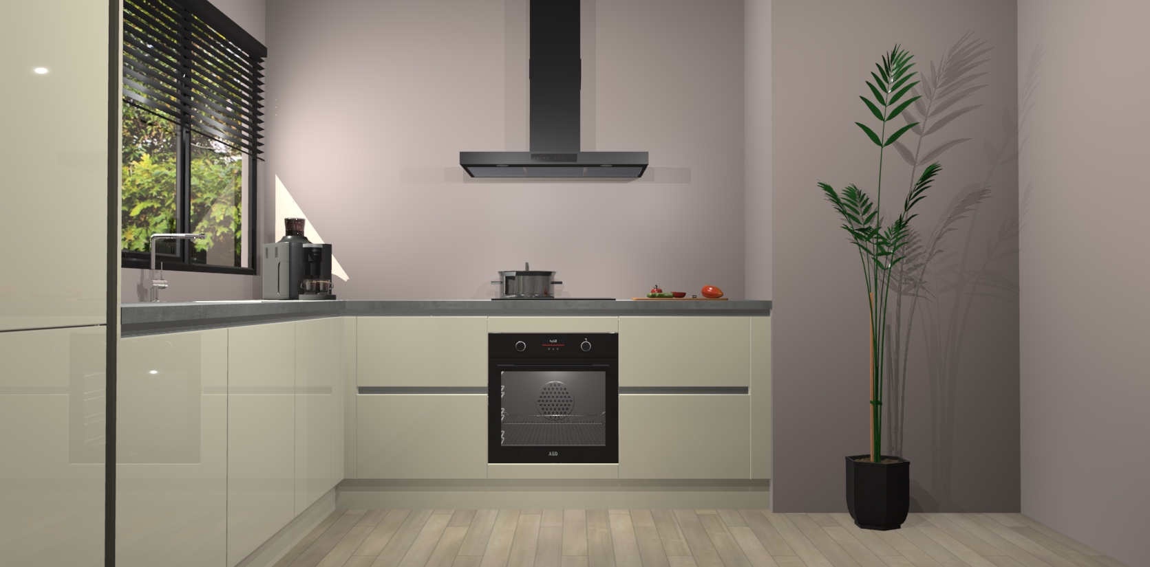 Met een modern, tijdloos design en ruime opslagruimte, zult u zich in no-time thuis voelen in uw nieuwe keuken. Uw leven wordt eenvoudiger met de soft-close deuren die voor het ultieme stille comfort zorgen - geen geluid dat u stoort terwijl u kookt. Ook is de keuken voorzien van 5 ingebouwde apparaten: een oven, inductie kookplaat, afzuigkap, vaatwasser en koelkast. Deze kunnen gemakkelijk na bestelling worden bijgewerkt naar AEG - waardoor uw luxe ervaring compleet is.