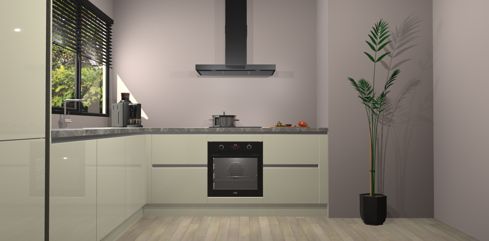 Met een modern, tijdloos design en ruime opslagruimte, zult u zich in no-time thuis voelen in uw nieuwe keuken. Uw leven wordt eenvoudiger met de soft-close deuren die voor het ultieme stille comfort zorgen - geen geluid dat u stoort terwijl u kookt. Ook is de keuken voorzien van 5 ingebouwde apparaten: een oven, inductie kookplaat, afzuigkap, vaatwasser en koelkast. Deze kunnen gemakkelijk na bestelling worden bijgewerkt naar AEG - waardoor uw luxe ervaring compleet is.