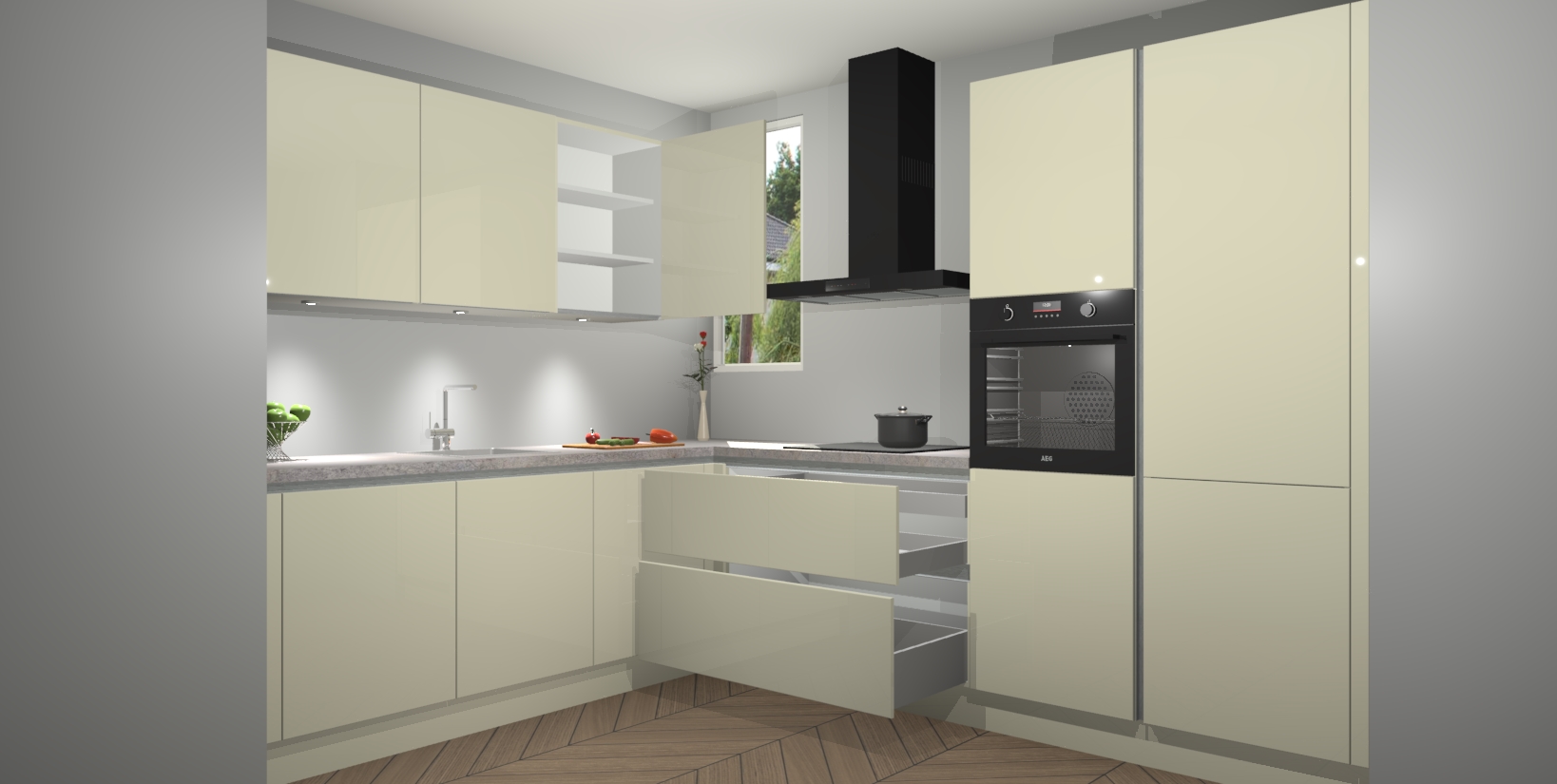 De ruime opbergruimte van dit model maakt het bereiden van voedsel en het gebruik van apparaten snel en gemakkelijk. Het beste van alles is dat het wordt geleverd met vijf inbouwapparaten: een oven, inductiekookplaat, afzuigkap, vaatwasser en koelkast - die allemaal gemakkelijk kunnen worden opgewaardeerd naar AEG na aankoop. Wat de gemaksfactor nog groter maakt, is het feit dat alle cabines voorgemonteerd worden geleverd, zodat u er meteen mee aan de slag kunt!