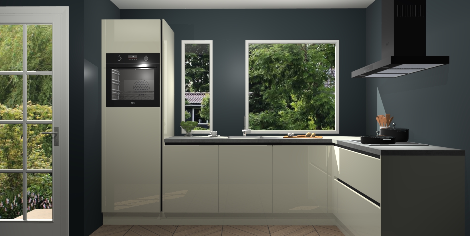 Deze complete keuken wordt geleverd met 5 inbouwapparaten: een oven, inductiekookplaat, afzuigkap, vaatwasser en koelkast. De toestellen kunnen na bestelling ook gemakkelijk worden opgewaardeerd naar AEG. Bovendien is elke deur in deze keuken voorzien van handige softclose technologie voor eenvoudig gebruik! Als een leuke toevoeging zit in deze keuken ook een carrousel, zo hoef je niet meer de hoek in duiken om iets te pakken.