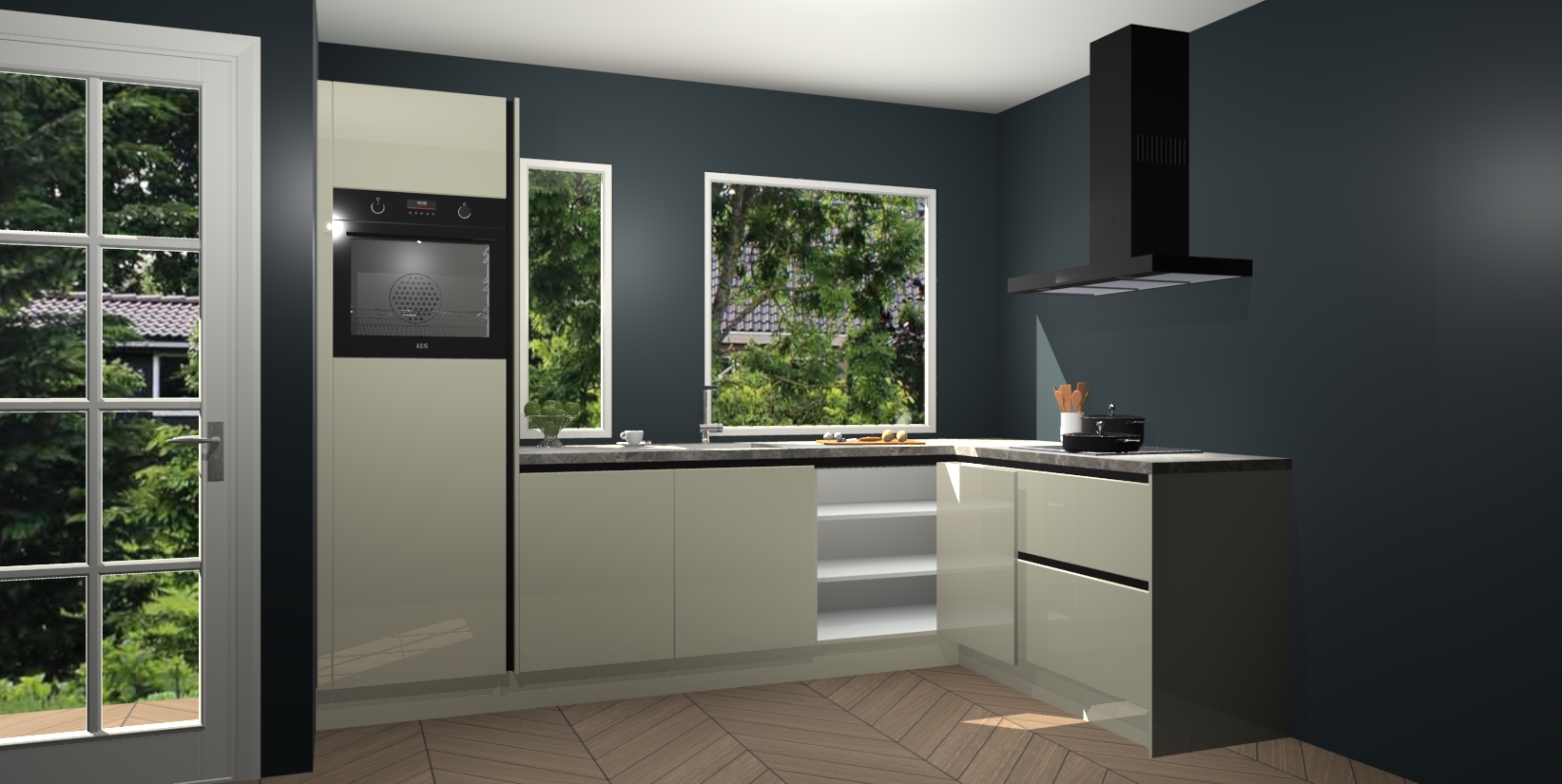 Deze complete keuken wordt geleverd met 5 inbouwapparaten: een oven, inductiekookplaat, afzuigkap, vaatwasser en koelkast. De toestellen kunnen na bestelling ook gemakkelijk worden opgewaardeerd naar AEG. Bovendien is elke deur in deze keuken voorzien van handige softclose technologie voor eenvoudig gebruik! Als een leuke toevoeging zit in deze keuken ook een carrousel, zo hoef je niet meer de hoek in duiken om iets te pakken.