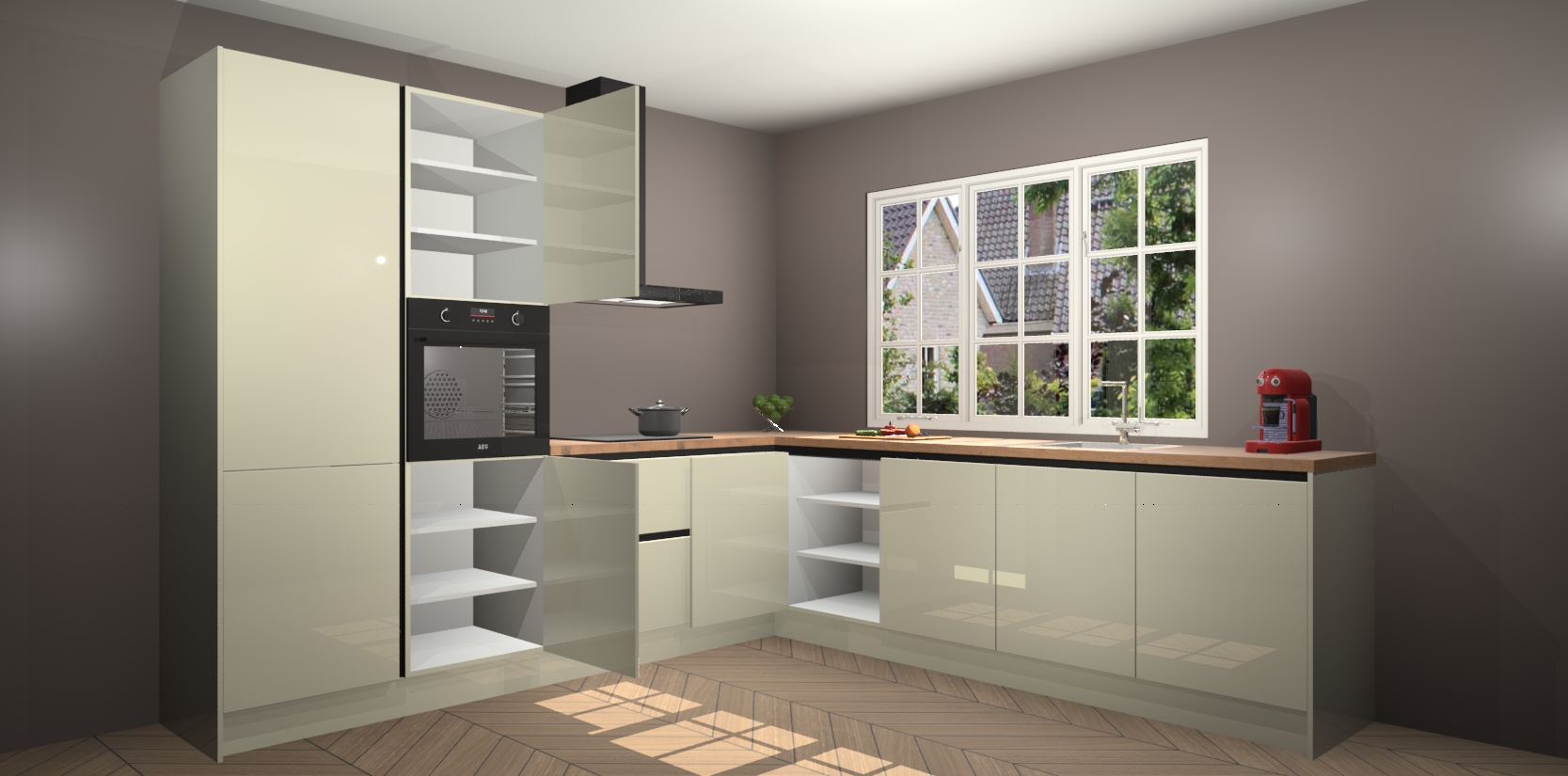 De keuken heeft veel opbergruimte, waardoor u alle ingrediënten gemakkelijk bereikbaar hebt staan. En daarnaast bevat deze volledig uitgeruste keuken ook 5 ingebouwde apparaten: een oven, inductiekookplaat, afzuigkap, vaatwasser en koelkast. Deze zijn heel eenvoudig na bestellen te upgraden naar AEG als u dit wilt. Bovendien zijn de softclose-kastdeuren ideaal; geef ze gewoon even een tikje en ze sluiten automatisch met geruisloze precisie.