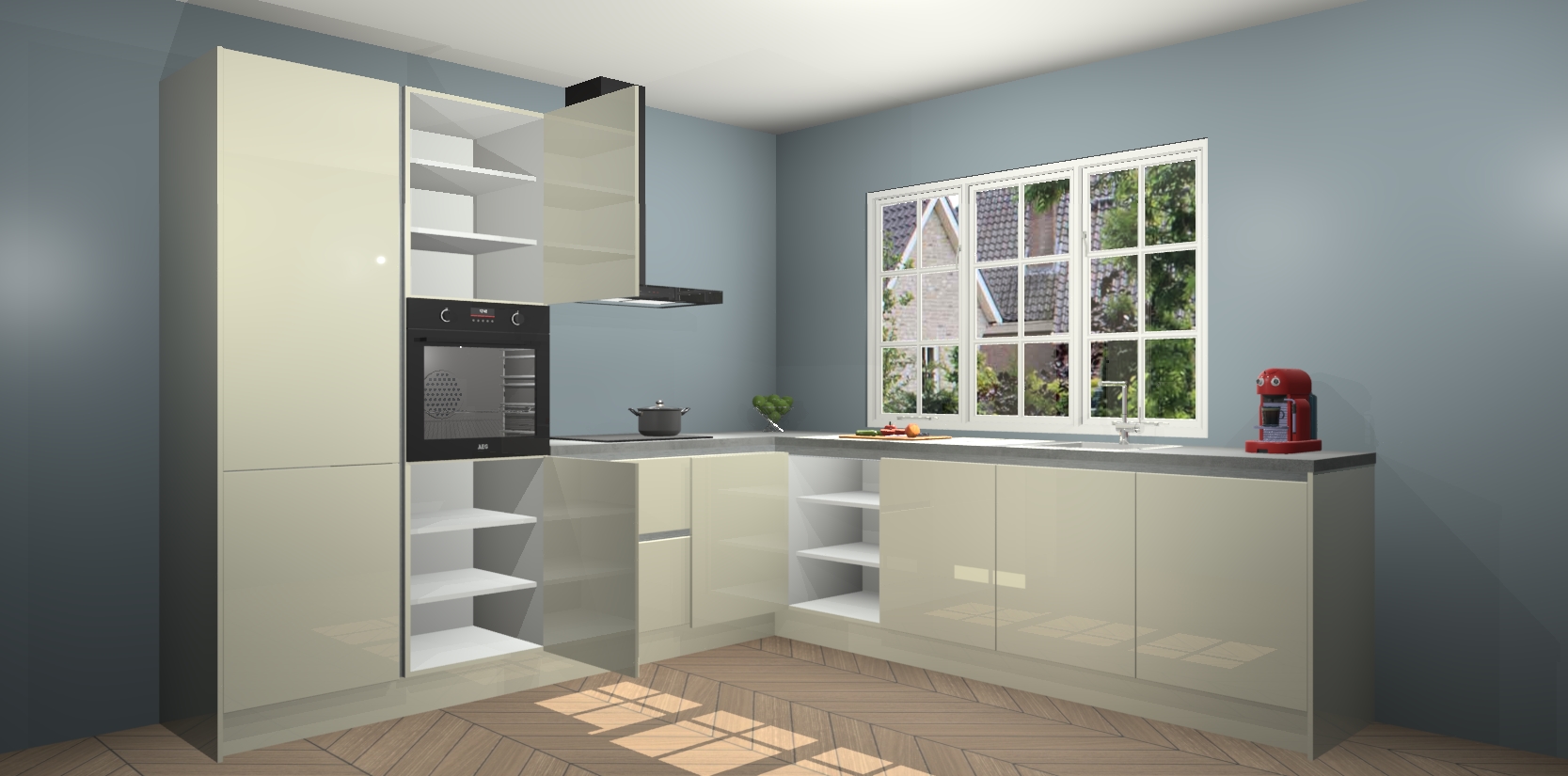 De keuken heeft veel opbergruimte, waardoor u alle ingrediënten gemakkelijk bereikbaar hebt staan. En daarnaast bevat deze volledig uitgeruste keuken ook 5 ingebouwde apparaten: een oven, inductiekookplaat, afzuigkap, vaatwasser en koelkast. Deze zijn heel eenvoudig na bestellen te upgraden naar AEG als u dit wilt. Bovendien zijn de softclose-kastdeuren ideaal; geef ze gewoon even een tikje en ze sluiten automatisch met geruisloze precisie.