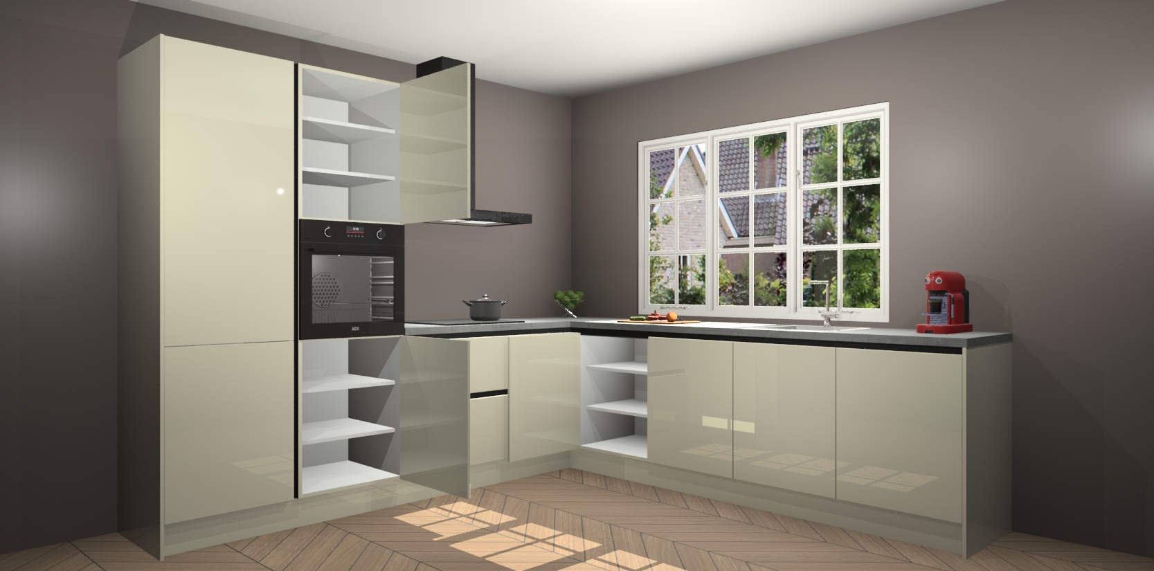 De keuken heeft veel opbergruimte, waardoor u alle ingrediënten gemakkelijk bereikbaar hebt staan. En daarnaast bevat deze volledig uitgeruste keuken ook 5 ingebouwde apparaten: een oven, inductiekookplaat, afzuigkap, vaatwasser en koelkast. Deze zijn heel eenvoudig na bestellen te upgraden naar AEG als u dit wilt. Bovendien zijn de softclose-kastdeuren ideaal; geef ze gewoon even een tikje en ze sluiten automatisch met geruisloze precisie.
