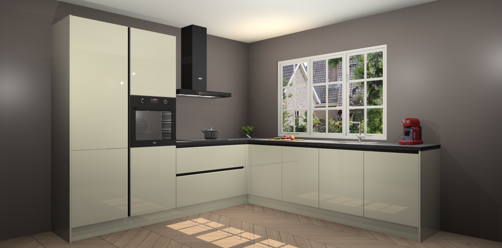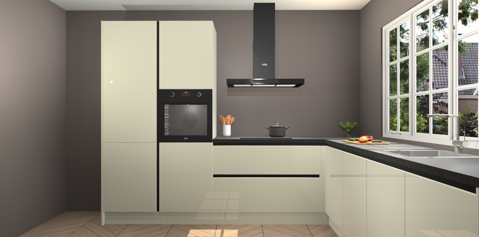 De keuken heeft veel opbergruimte, waardoor u alle ingrediënten gemakkelijk bereikbaar hebt staan. En daarnaast bevat deze volledig uitgeruste keuken ook 5 ingebouwde apparaten: een oven, inductiekookplaat, afzuigkap, vaatwasser en koelkast. Deze zijn heel eenvoudig na bestellen te upgraden naar AEG als u dit wilt. Bovendien zijn de softclose-kastdeuren ideaal; geef ze gewoon even een tikje en ze sluiten automatisch met geruisloze precisie.