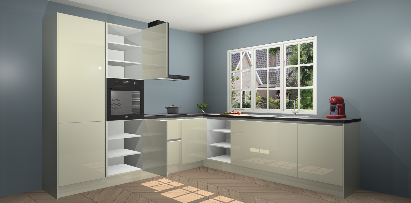 De keuken heeft veel opbergruimte, waardoor u alle ingrediënten gemakkelijk bereikbaar hebt staan. En daarnaast bevat deze volledig uitgeruste keuken ook 5 ingebouwde apparaten: een oven, inductiekookplaat, afzuigkap, vaatwasser en koelkast. Deze zijn heel eenvoudig na bestellen te upgraden naar AEG als u dit wilt. Bovendien zijn de softclose-kastdeuren ideaal; geef ze gewoon even een tikje en ze sluiten automatisch met geruisloze precisie.