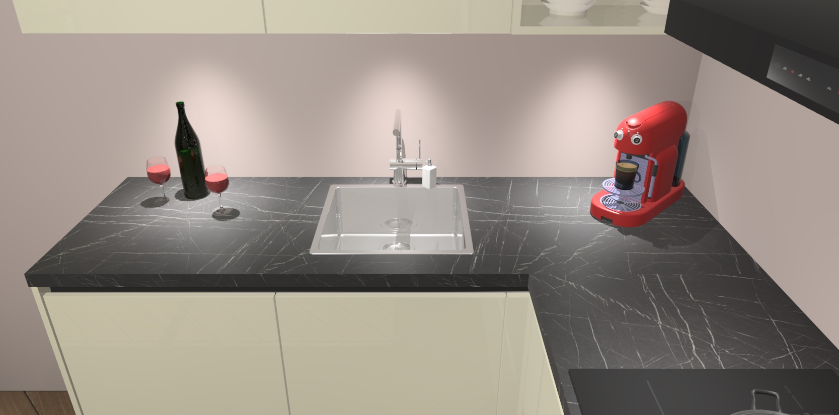 - Bij een hoekwerkblad zijn de hoeken in gevreesd en op maat gemaakt
