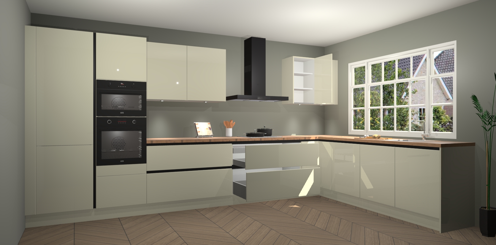 Kom dichtbij de perfecte keuken van uw dromen met de magnolia hoogglans greeploze keuken Graz. Met een prachtige houtlook en eigentijds ontwerp, straalt deze keuken warmte en sfeer uit. Of u nu liefhebber bent van traditionele of moderne stijlen, er is genoeg ruimte om aan al uw behoeften te voldoen.