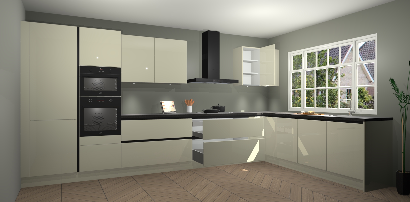Kom dichtbij de perfecte keuken van uw dromen met de magnolia hoogglans greeploze keuken Graz. Met een prachtige houtlook en eigentijds ontwerp, straalt deze keuken warmte en sfeer uit. Of u nu liefhebber bent van traditionele of moderne stijlen, er is genoeg ruimte om aan al uw behoeften te voldoen.