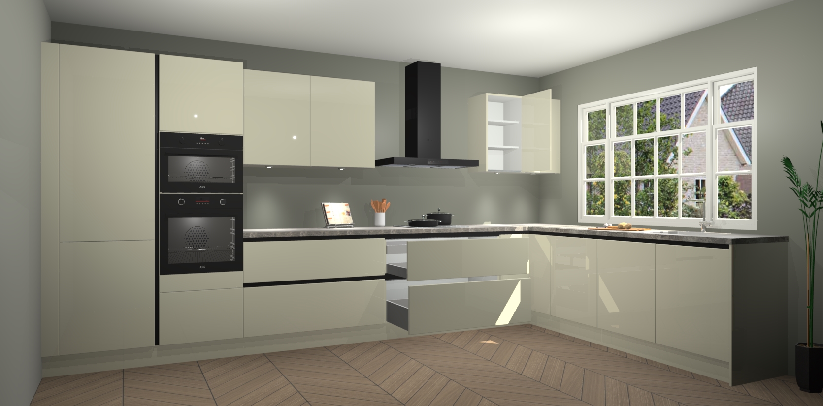 Kom dichtbij de perfecte keuken van uw dromen met de magnolia hoogglans greeploze keuken Graz. Met een prachtige houtlook en eigentijds ontwerp, straalt deze keuken warmte en sfeer uit. Of u nu liefhebber bent van traditionele of moderne stijlen, er is genoeg ruimte om aan al uw behoeften te voldoen.