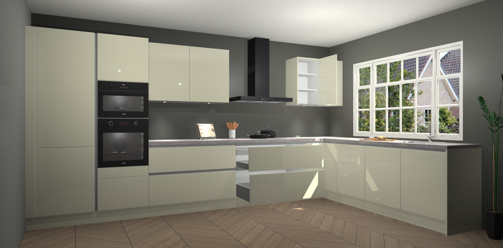 Kom dichtbij de perfecte keuken van uw dromen met de magnolia hoogglans greeploze keuken Graz. Met een prachtige houtlook en eigentijds ontwerp, straalt deze keuken warmte en sfeer uit. Of u nu liefhebber bent van traditionele of moderne stijlen, er is genoeg ruimte om aan al uw behoeften te voldoen.