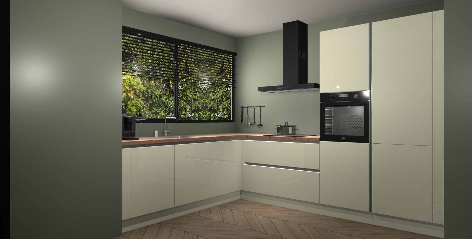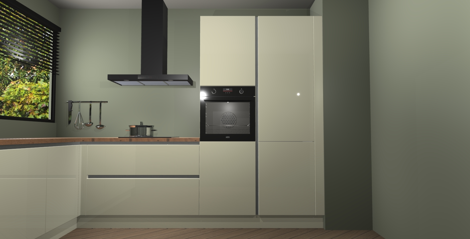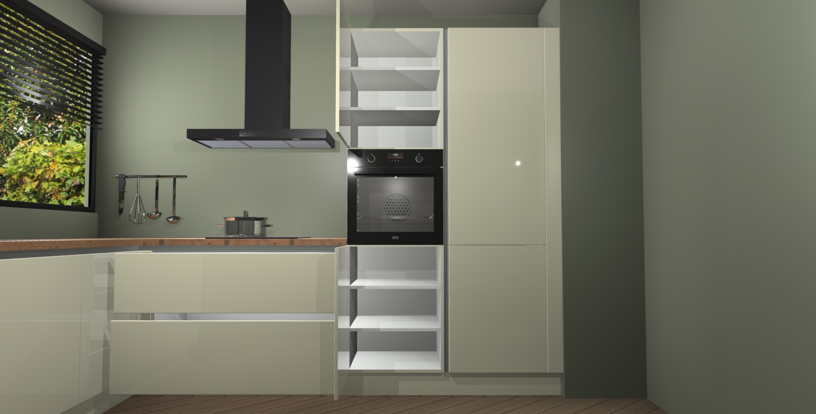 Met een modern, tijdloos design en ruime opslagruimte, zult u zich in no-time thuis voelen in uw nieuwe keuken. Uw leven wordt eenvoudiger met de soft-close deuren die voor het ultieme stille comfort zorgen - geen geluid dat u stoort terwijl u kookt. Ook is de keuken voorzien van 5 ingebouwde apparaten: een oven, inductie kookplaat, afzuigkap, vaatwasser en koelkast. Deze kunnen gemakkelijk na bestelling worden bijgewerkt naar AEG - waardoor uw luxe ervaring compleet is.