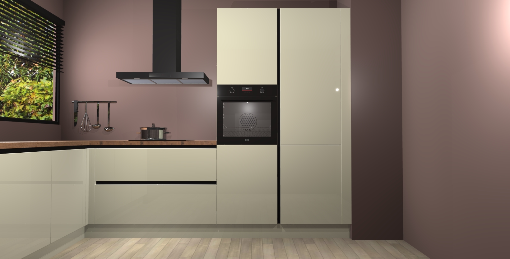 Met een modern, tijdloos design en ruime opslagruimte, zult u zich in no-time thuis voelen in uw nieuwe keuken. Uw leven wordt eenvoudiger met de soft-close deuren die voor het ultieme stille comfort zorgen - geen geluid dat u stoort terwijl u kookt. Ook is de keuken voorzien van 5 ingebouwde apparaten: een oven, inductie kookplaat, afzuigkap, vaatwasser en koelkast. Deze kunnen gemakkelijk na bestelling worden bijgewerkt naar AEG - waardoor uw luxe ervaring compleet is.