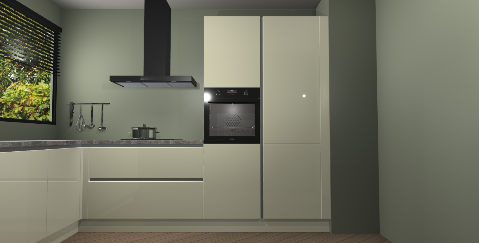 Met een modern, tijdloos design en ruime opslagruimte, zult u zich in no-time thuis voelen in uw nieuwe keuken. Uw leven wordt eenvoudiger met de soft-close deuren die voor het ultieme stille comfort zorgen - geen geluid dat u stoort terwijl u kookt. Ook is de keuken voorzien van 5 ingebouwde apparaten: een oven, inductie kookplaat, afzuigkap, vaatwasser en koelkast. Deze kunnen gemakkelijk na bestelling worden bijgewerkt naar AEG - waardoor uw luxe ervaring compleet is.