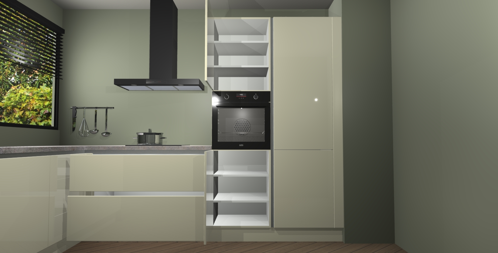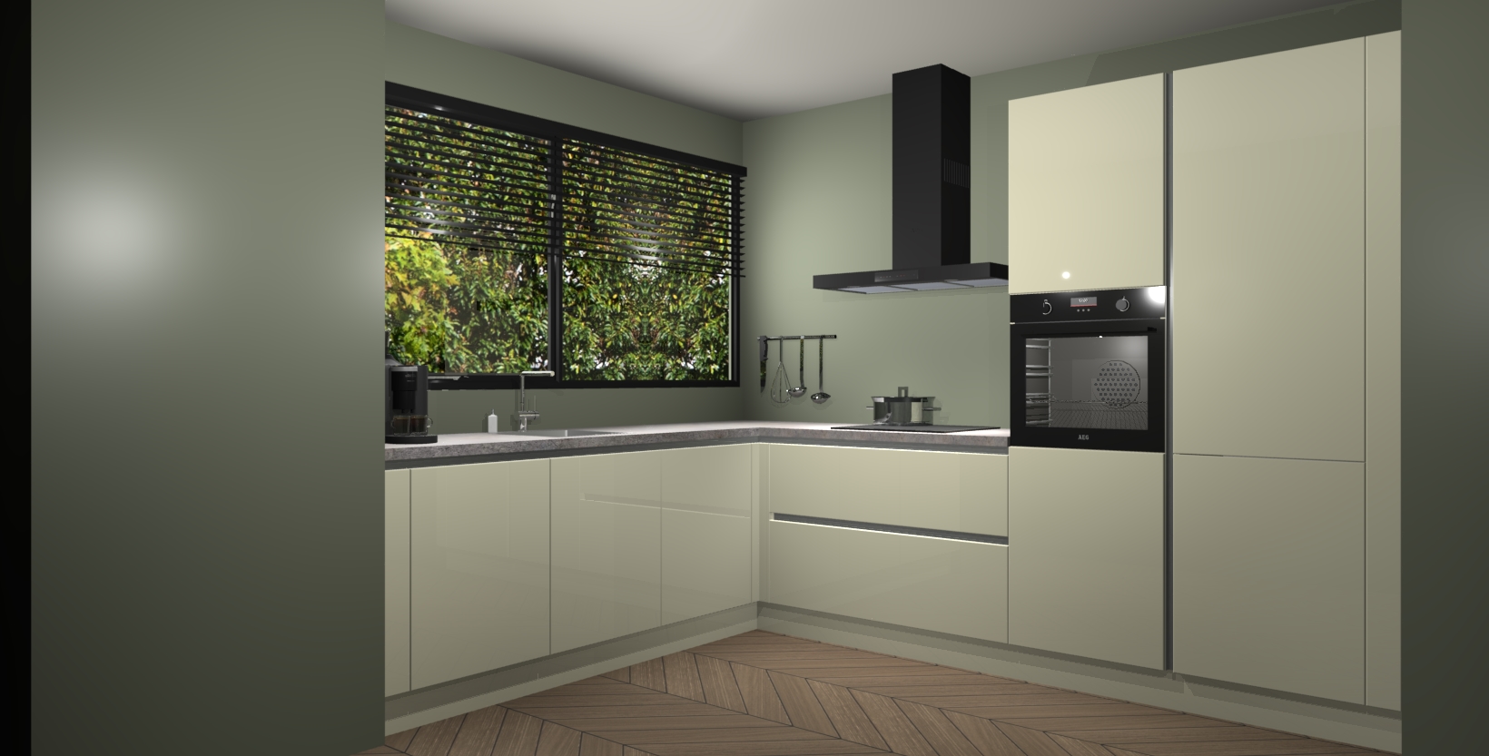 Met een modern, tijdloos design en ruime opslagruimte, zult u zich in no-time thuis voelen in uw nieuwe keuken. Uw leven wordt eenvoudiger met de soft-close deuren die voor het ultieme stille comfort zorgen - geen geluid dat u stoort terwijl u kookt. Ook is de keuken voorzien van 5 ingebouwde apparaten: een oven, inductie kookplaat, afzuigkap, vaatwasser en koelkast. Deze kunnen gemakkelijk na bestelling worden bijgewerkt naar AEG - waardoor uw luxe ervaring compleet is.