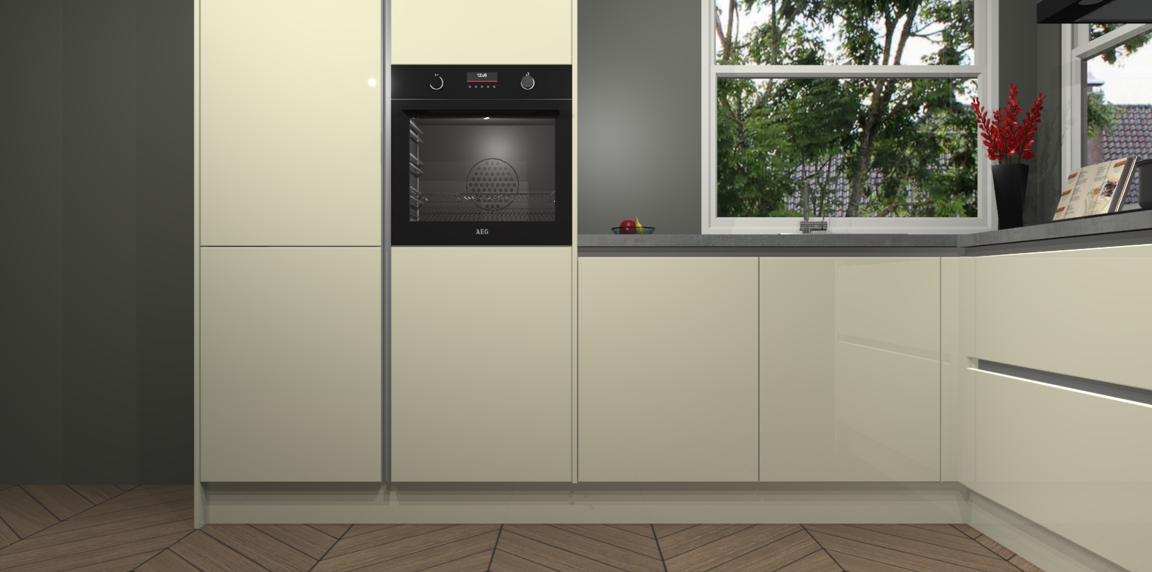 De Magnolia hoogglans greeploze keuken Kotor wordt geleverd met vijf inbouwapparaten, waaronder een oven, inductiekookplaat, afzuigkap, vaatwasser en koelkast. En als u uw apparatuur wilt upgraden, kunnen we u na bestelling eenvoudig helpen overstappen naar AEG. Bovendien heeft deze keuken soft close deuren, zodat lades en kastjes geruisloos en zonder klepperen sluiten!