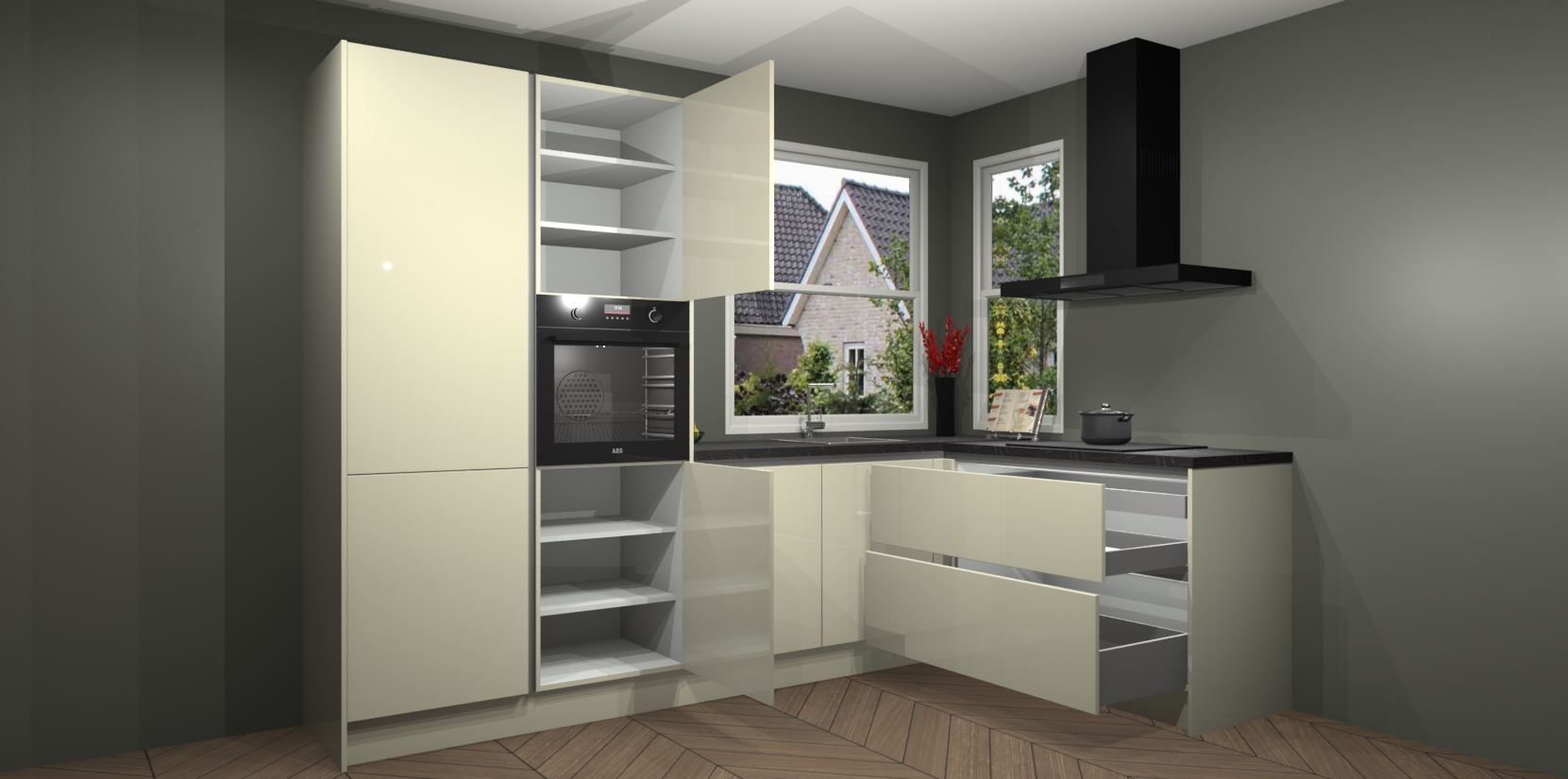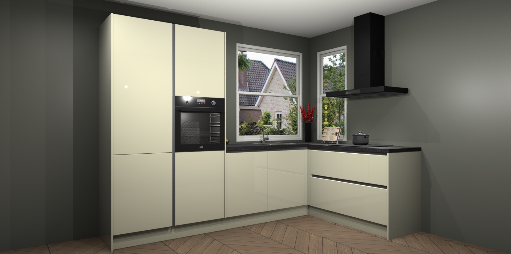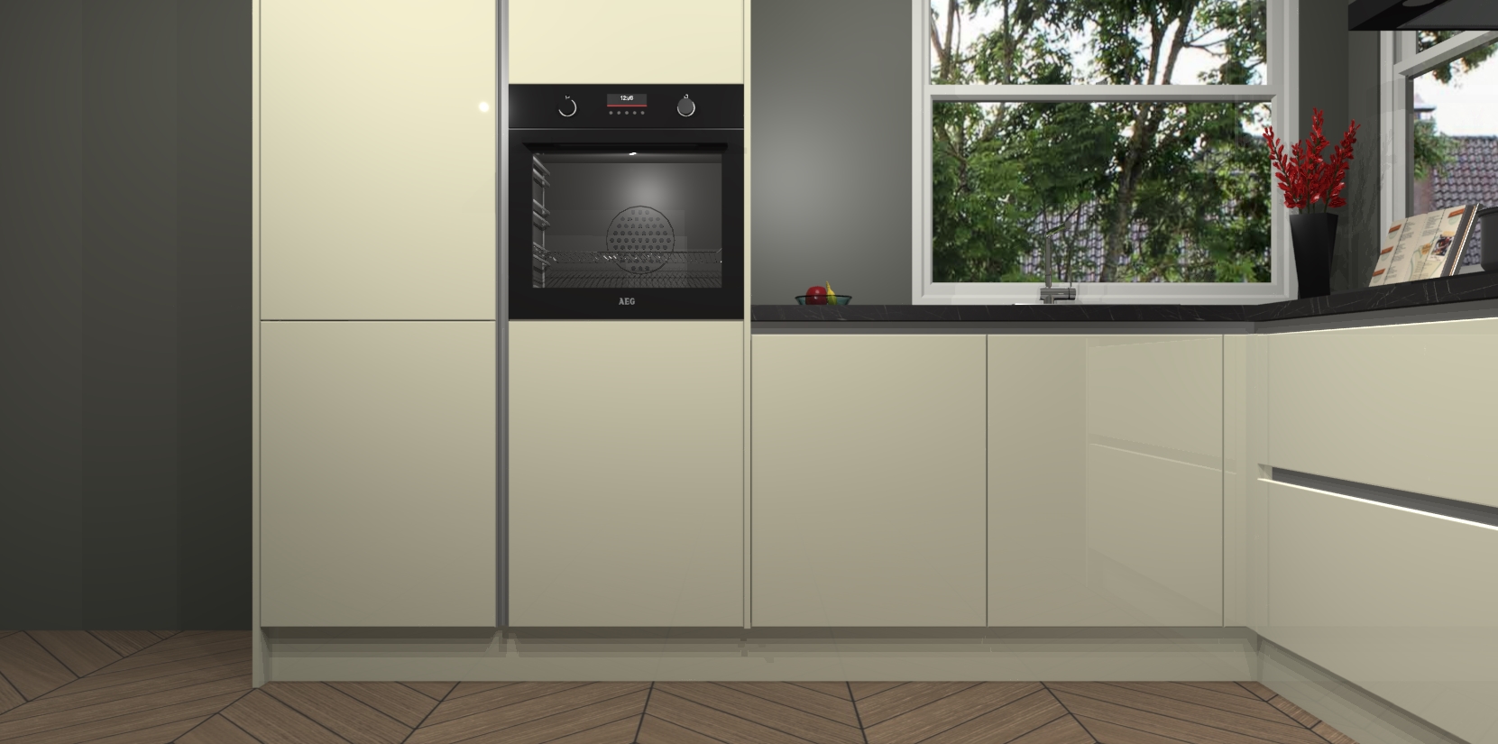 De Magnolia hoogglans greeploze keuken Kotor wordt geleverd met vijf inbouwapparaten, waaronder een oven, inductiekookplaat, afzuigkap, vaatwasser en koelkast. En als u uw apparatuur wilt upgraden, kunnen we u na bestelling eenvoudig helpen overstappen naar AEG. Bovendien heeft deze keuken soft close deuren, zodat lades en kastjes geruisloos en zonder klepperen sluiten!