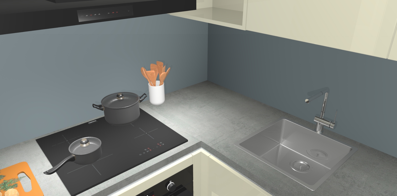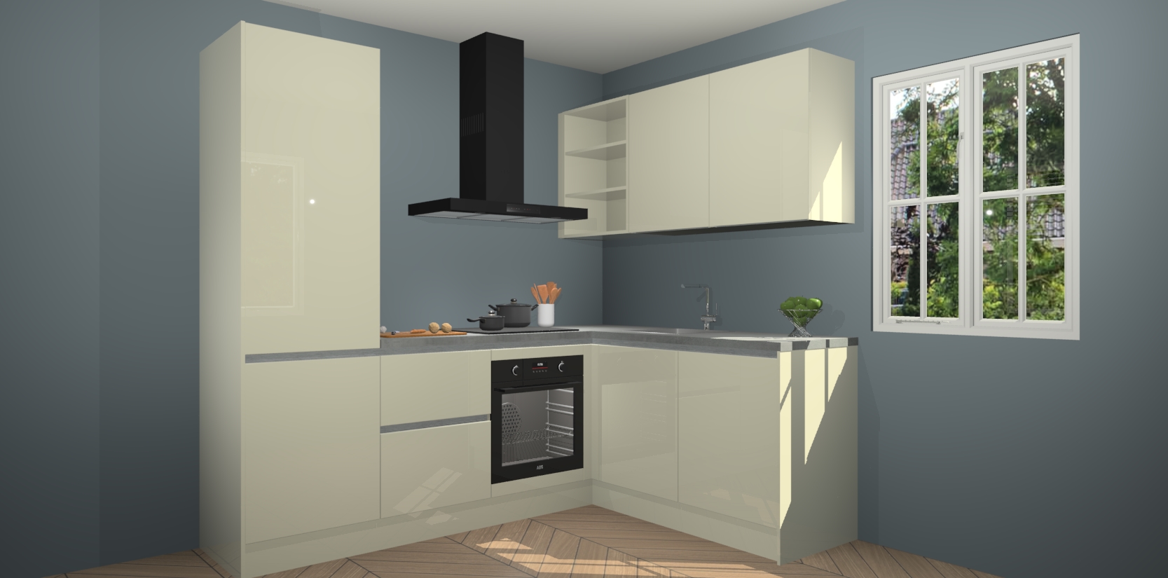 Inclusief plinten, stelpoten en werkblad