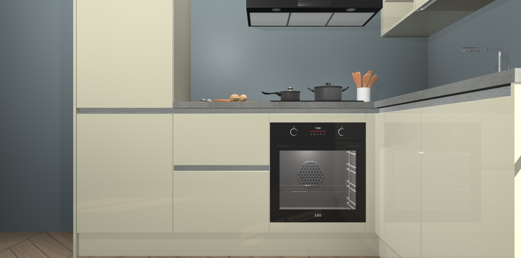 Dit model biedt u voldoende opbergruimte en vijf ingebouwde apparaten: een oven, inductiekookplaat, afzuigkap, vaatwasser en koelkast. Deze apparaten kunnen gemakkelijk worden geüpgrade naar AEG nadat u besteld heeft. De verschillende laden en kastjes bevatten softclose-deuren waardoor ze gezellig dichtvallen met een geruststellend helemaal geruisloos geluid. En dat is nog niet alles! We garanderen ook dat de prijs altijd laag blijft - dus haal nu uw Magnolia hoogglans greeploze keuken Krakau terwijl het kan.