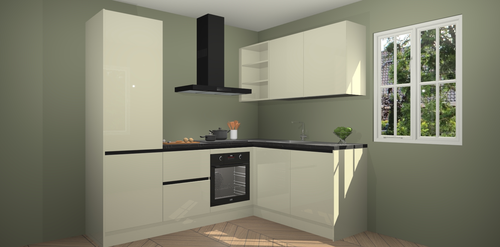 Dit model biedt u voldoende opbergruimte en vijf ingebouwde apparaten: een oven, inductiekookplaat, afzuigkap, vaatwasser en koelkast. Deze apparaten kunnen gemakkelijk worden geüpgrade naar AEG nadat u besteld heeft. De verschillende laden en kastjes bevatten softclose-deuren waardoor ze gezellig dichtvallen met een geruststellend helemaal geruisloos geluid. En dat is nog niet alles! We garanderen ook dat de prijs altijd laag blijft - dus haal nu uw Magnolia hoogglans greeploze keuken Krakau terwijl het kan.