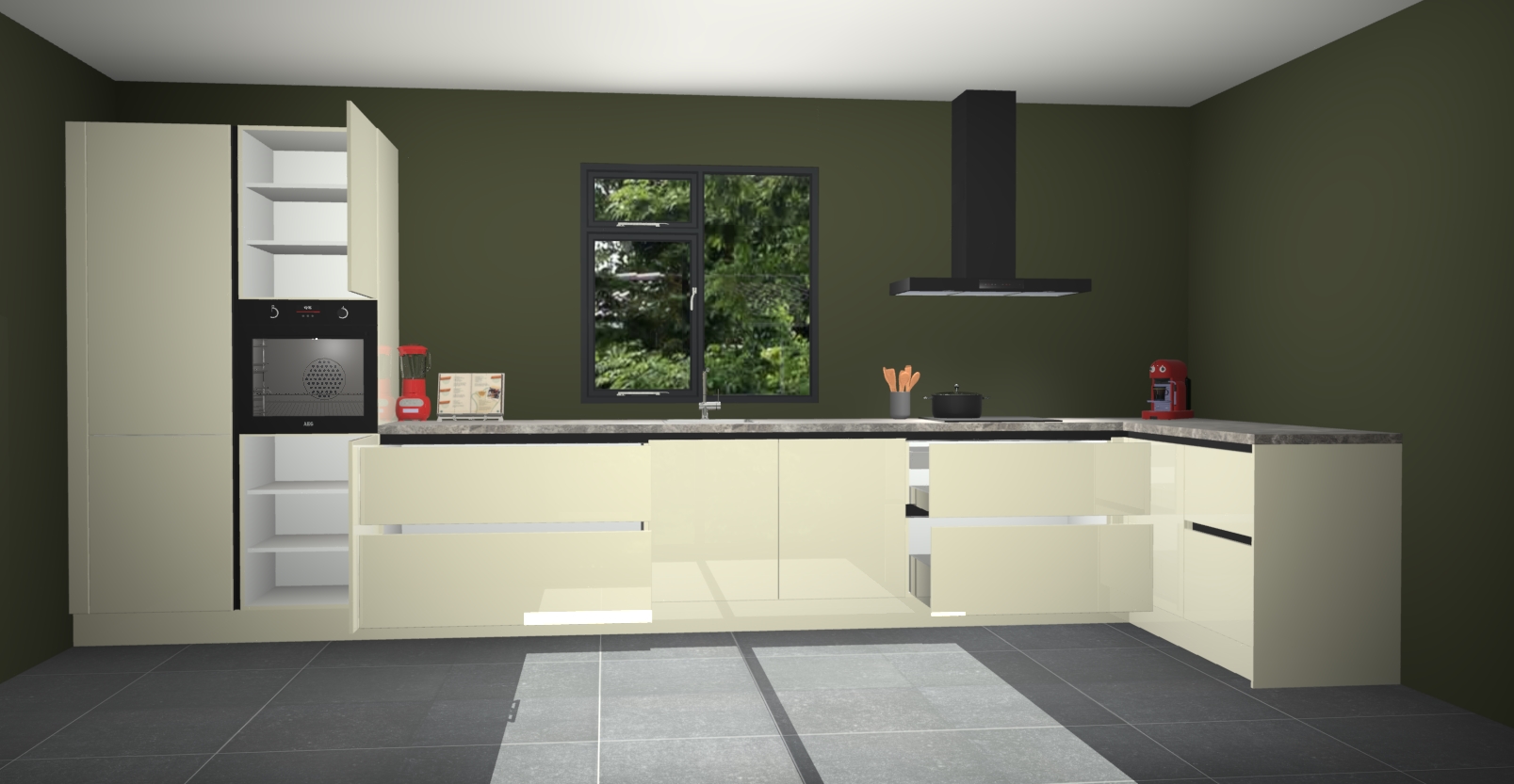 De Magnolia hoogglans keuken Lille wordt geleverd met vijf inbouwapparaten - een oven, inductiekookplaat, afzuigkap, vaatwasser en koelkast. Maar dat is nog niet alles! Na bestelling kunnen deze apparaten eenvoudig worden geüpgraded naar premium AEG-apparatuur. Bovendien is er zelfs de optie om de oven te vervangen door een combimagnetron of uw inductiekookplaat te vervangen door een kookplaat met geïntegreerde afzuiging.