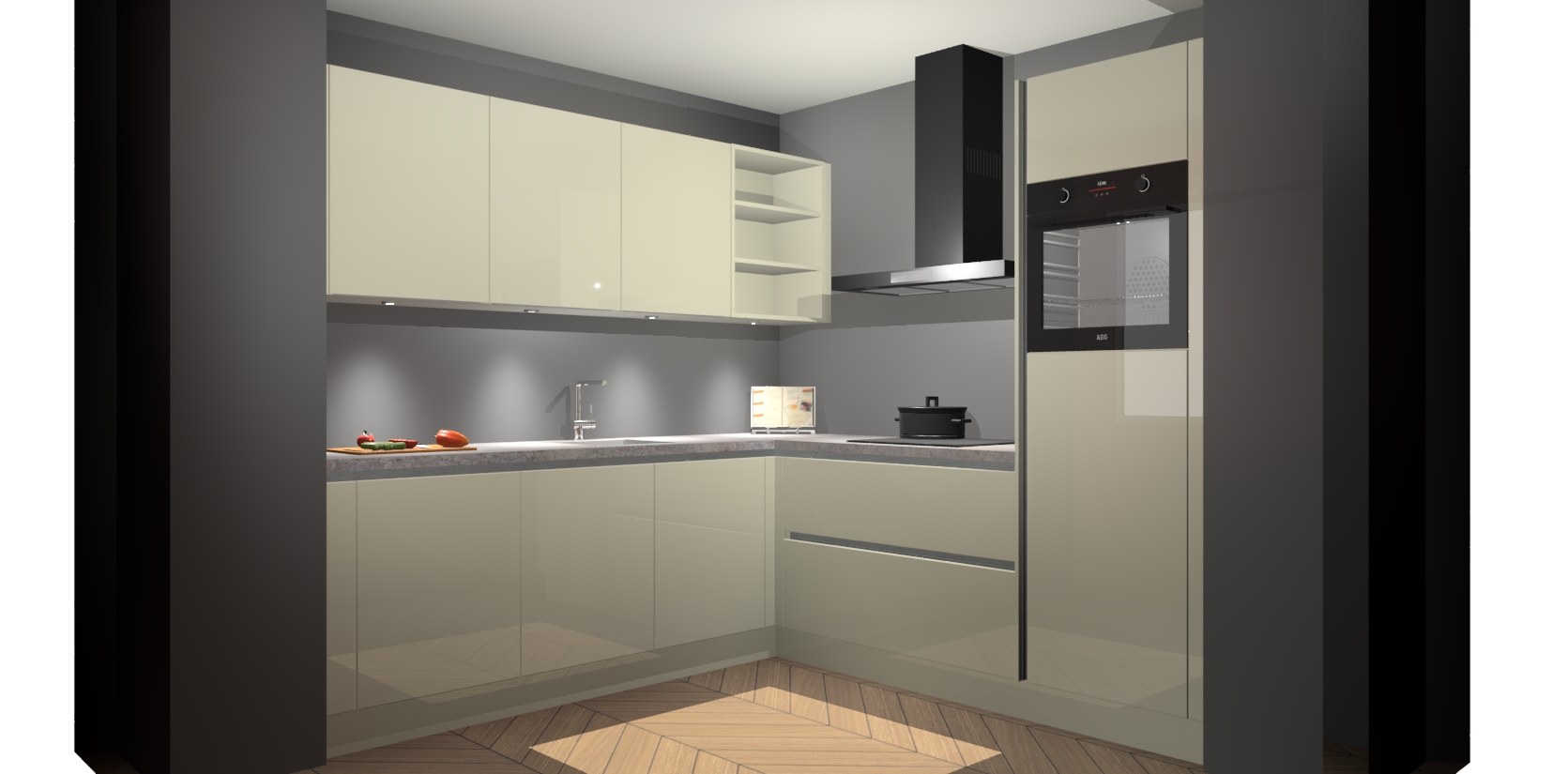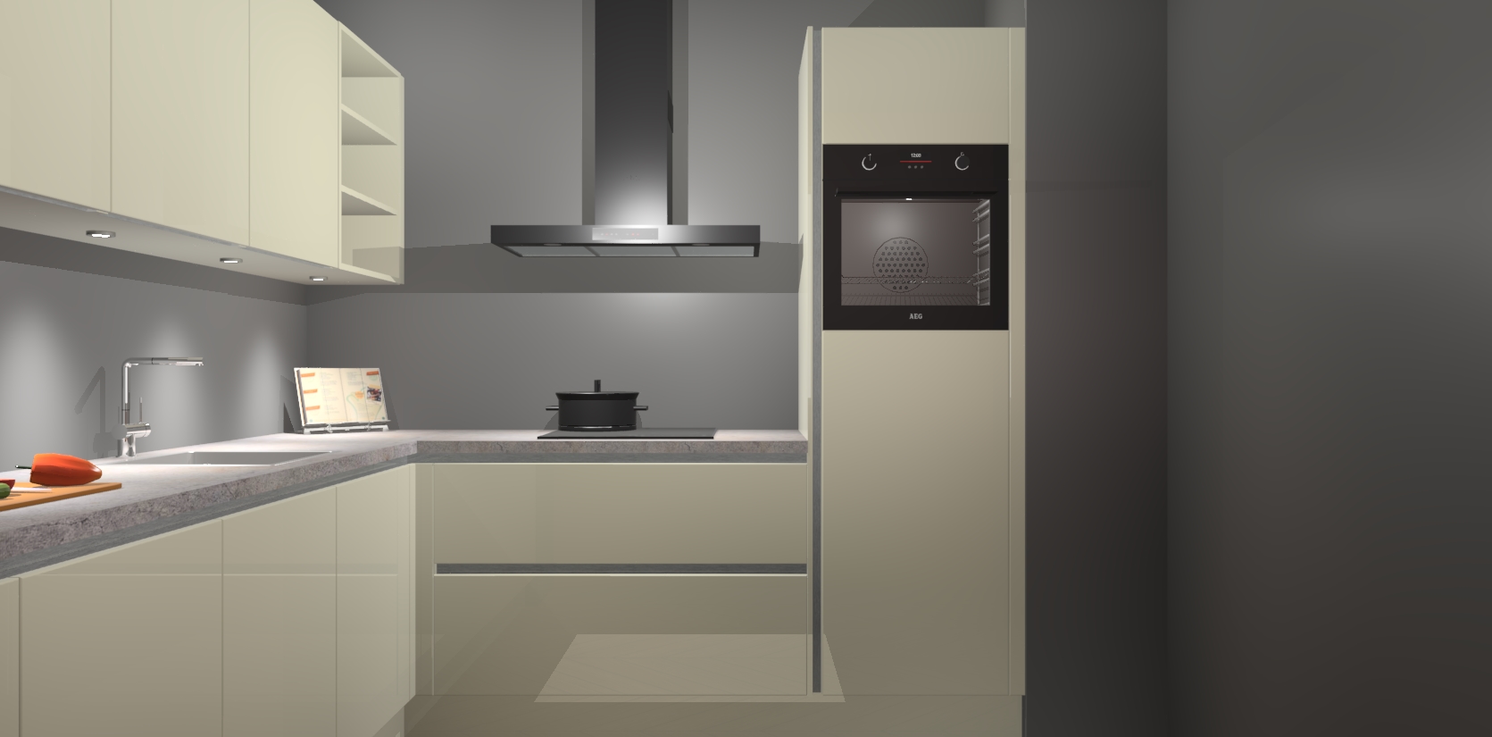 Met een modern, tijdloos design en ruime opslagruimte, zult u zich in no-time thuis voelen in uw nieuwe keuken. Uw leven wordt eenvoudiger met de soft-close deuren die voor het ultieme stille comfort zorgen - geen geluid dat u stoort terwijl u kookt. Ook is de keuken voorzien van 5 ingebouwde apparaten: een oven, inductie kookplaat, afzuigkap, vaatwasser en koelkast. Deze kunnen gemakkelijk na bestelling worden bijgewerkt naar AEG - waardoor uw luxe ervaring compleet is.