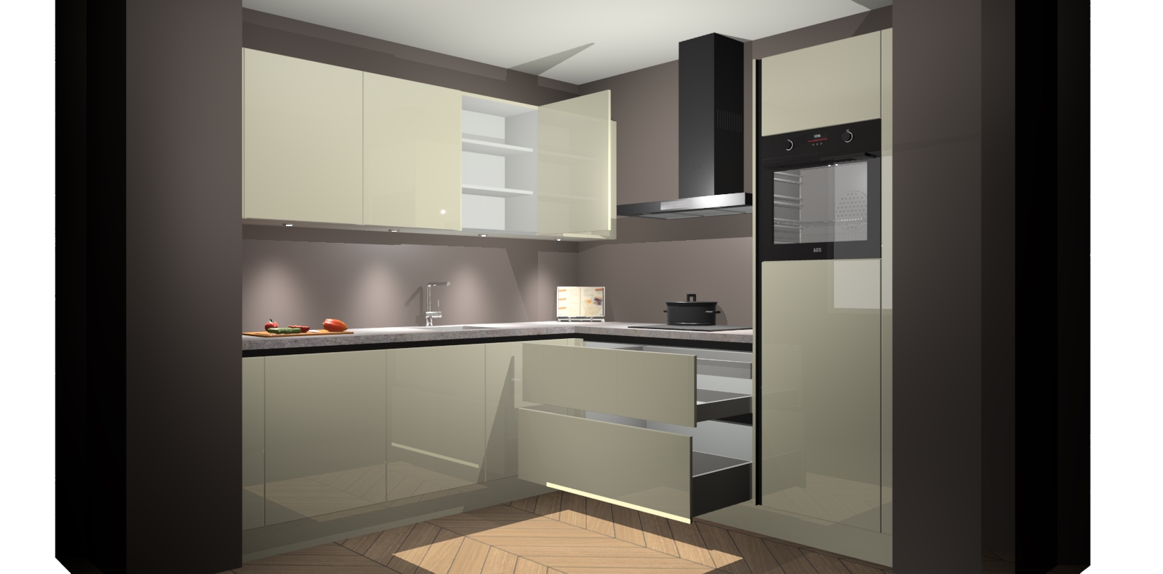Met een modern, tijdloos design en ruime opslagruimte, zult u zich in no-time thuis voelen in uw nieuwe keuken. Uw leven wordt eenvoudiger met de soft-close deuren die voor het ultieme stille comfort zorgen - geen geluid dat u stoort terwijl u kookt. Ook is de keuken voorzien van 5 ingebouwde apparaten: een oven, inductie kookplaat, afzuigkap, vaatwasser en koelkast. Deze kunnen gemakkelijk na bestelling worden bijgewerkt naar AEG - waardoor uw luxe ervaring compleet is.