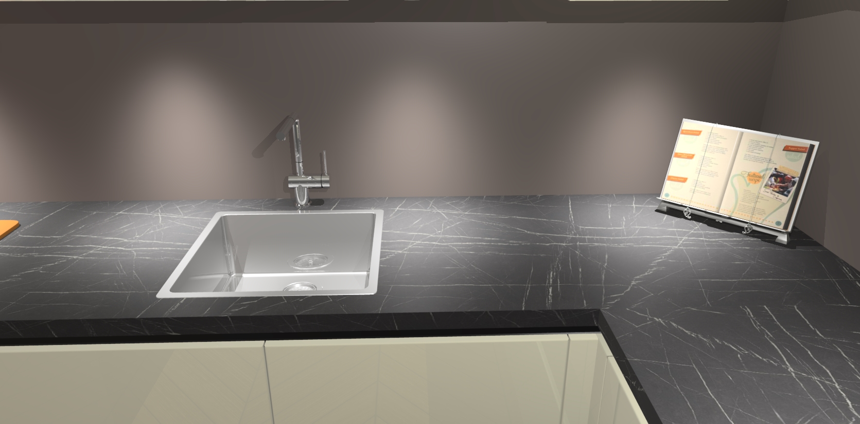 - De spoelbak is nog niet in gevreesd, dit dient tijdens het werk gedaan te worden